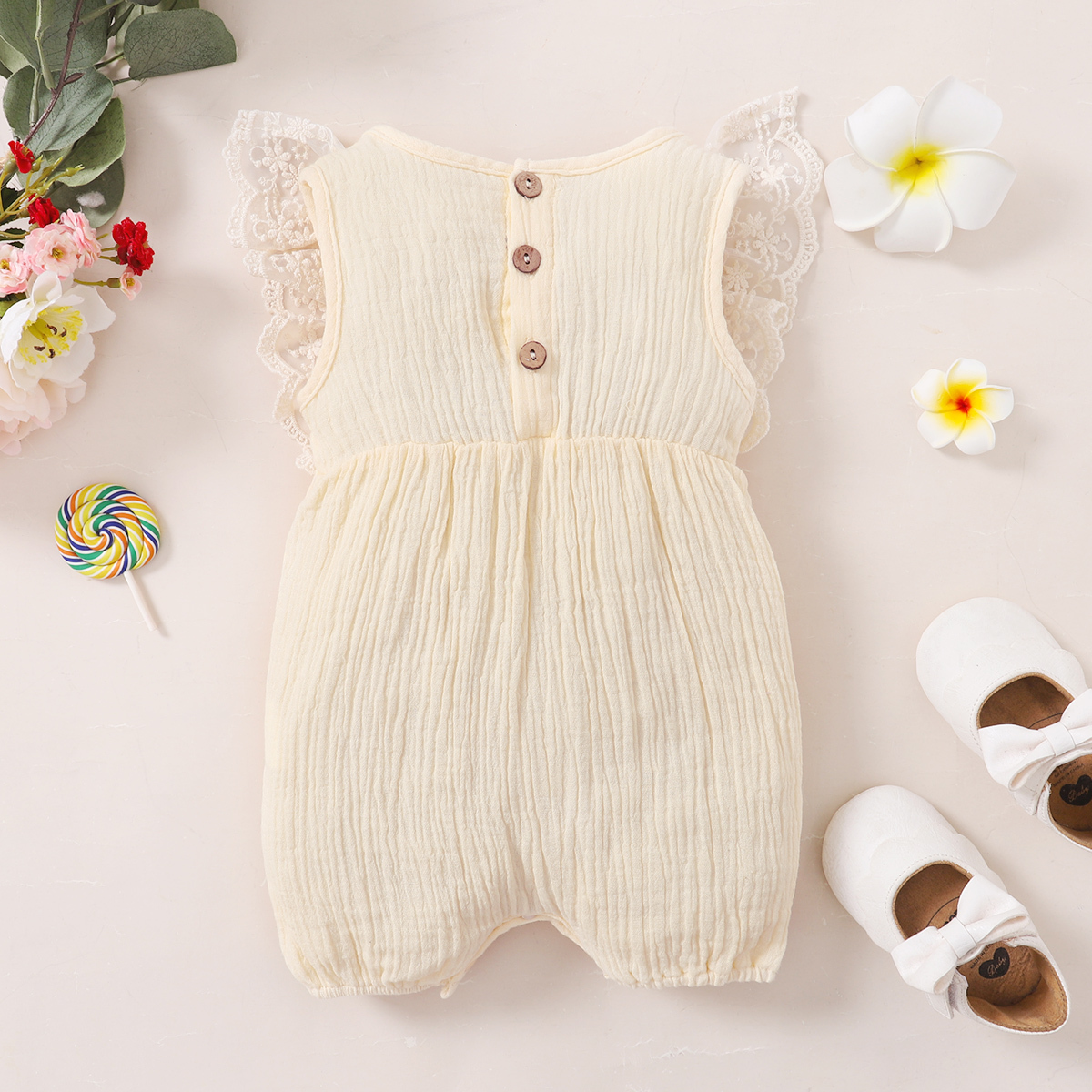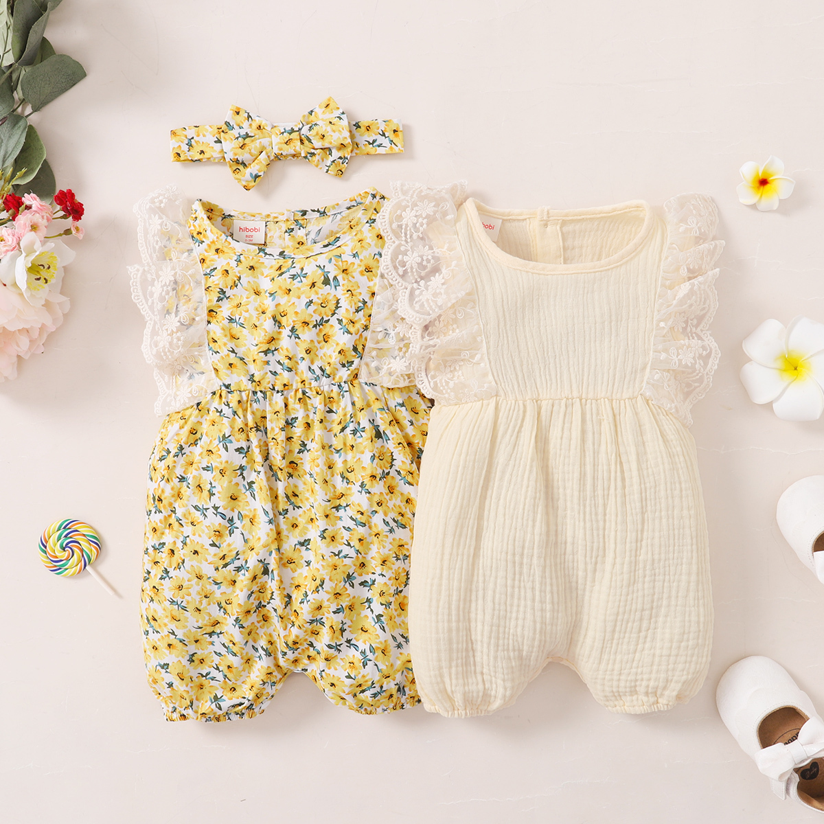 hibobi Girl Baby Pastoral White Lace Sleeveless Bodysuit & Headband Wholesale