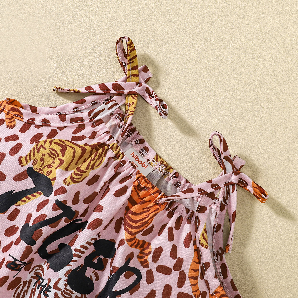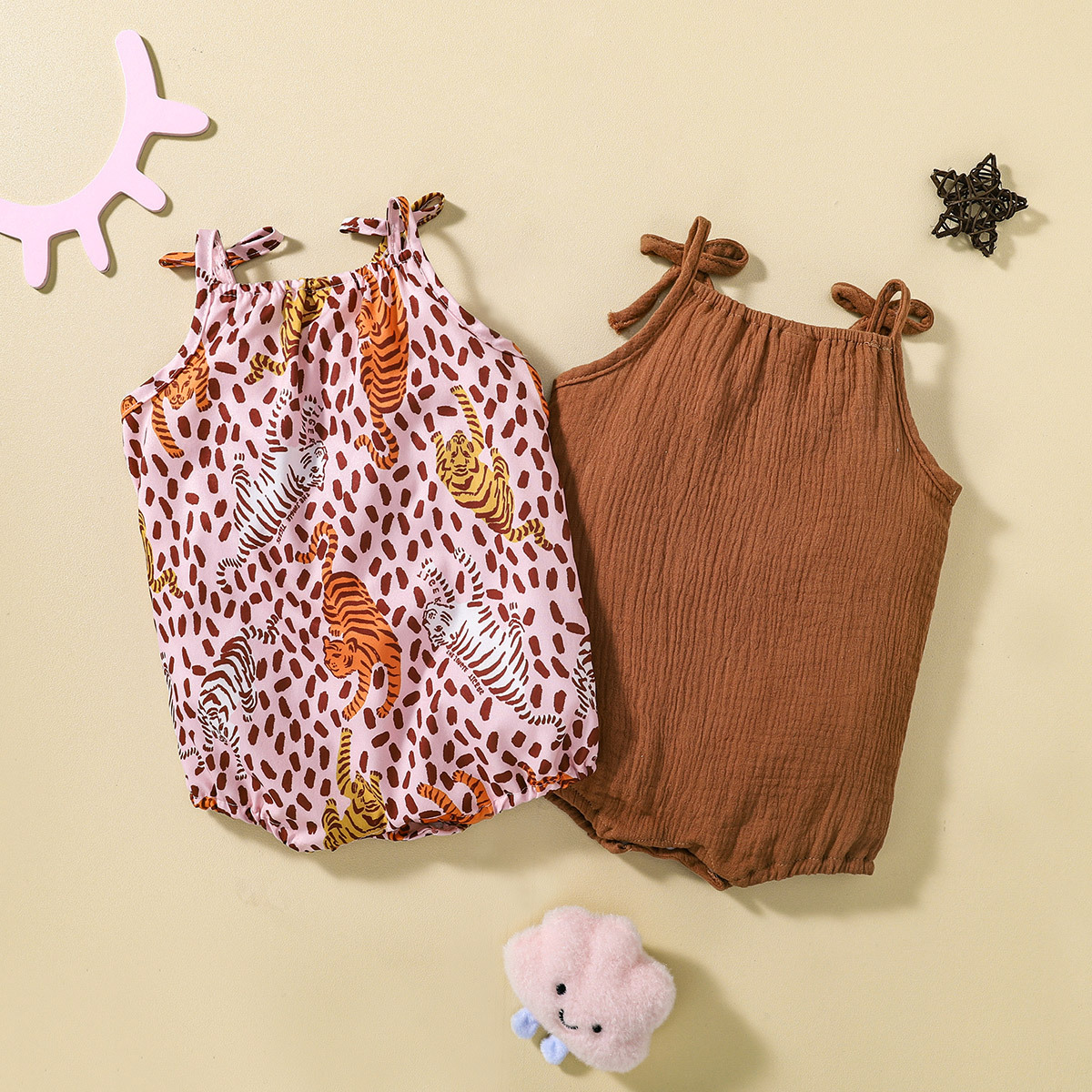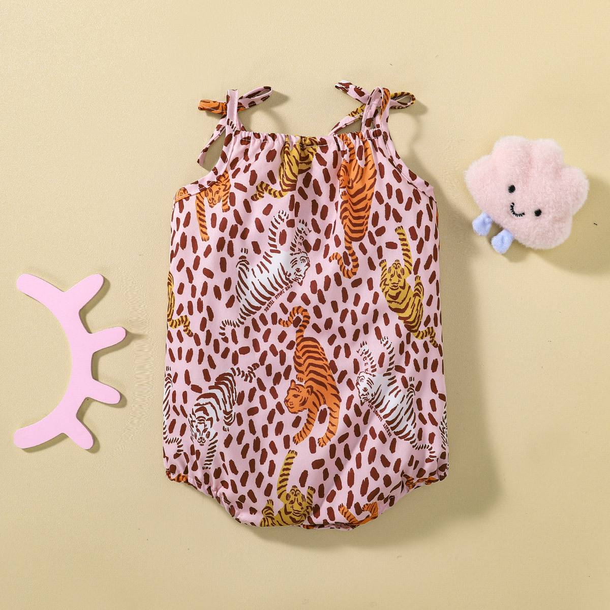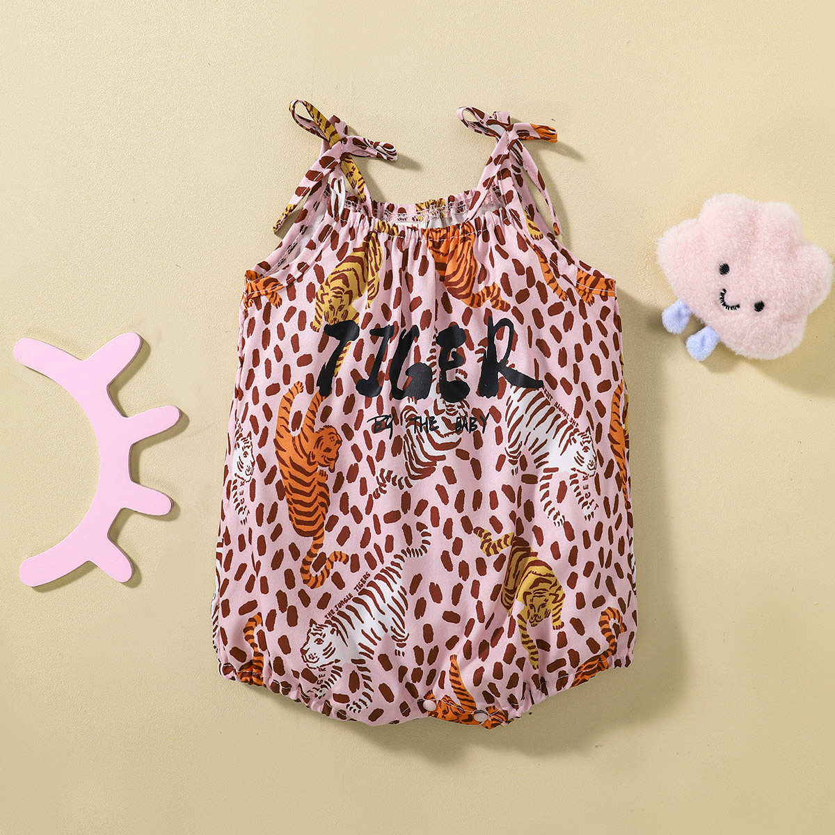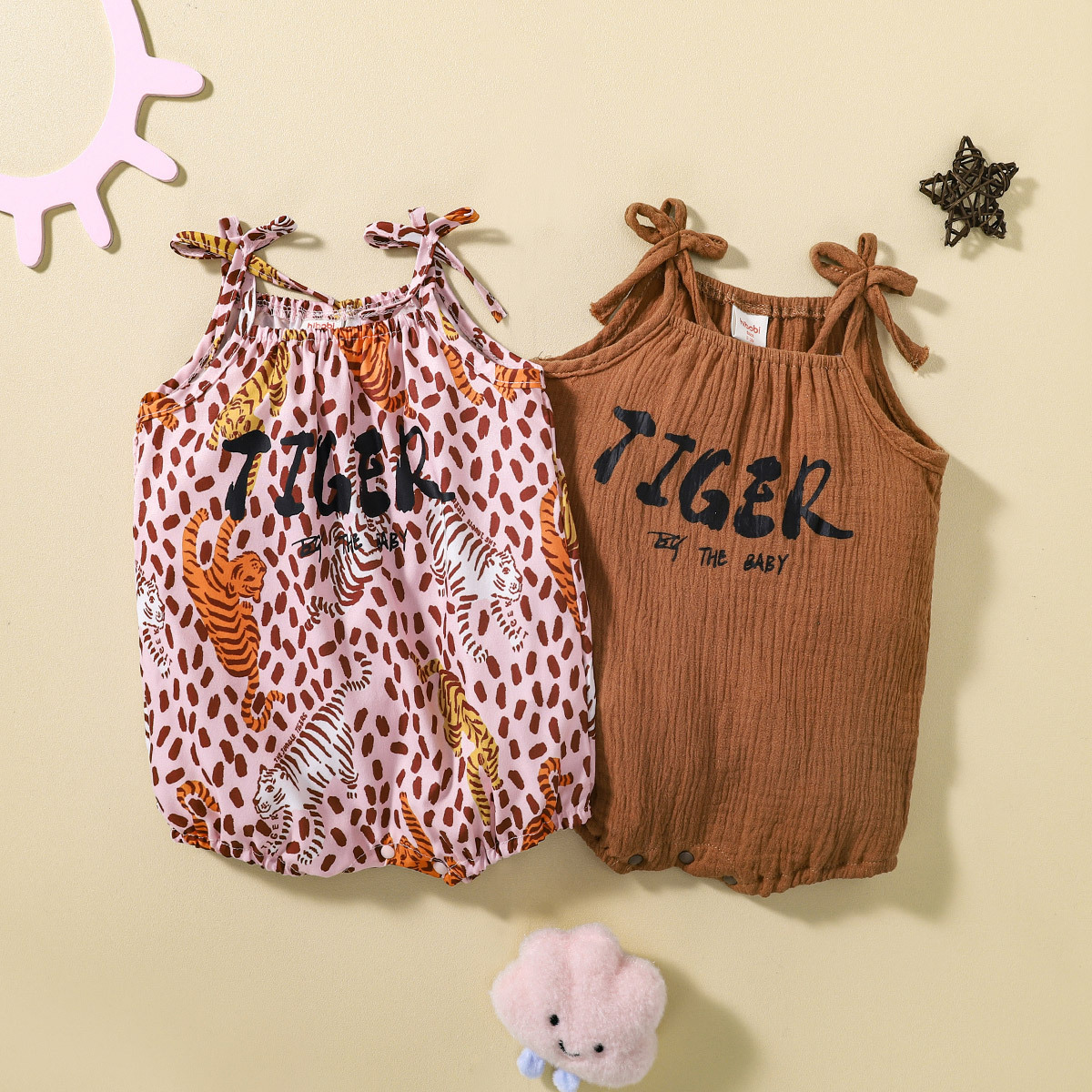 hibobi Girl Baby Tiger Print & Letter Non-stretch Bodysuits Wholesale