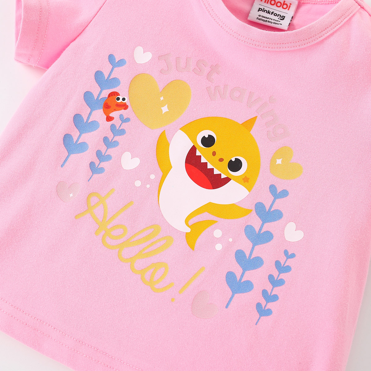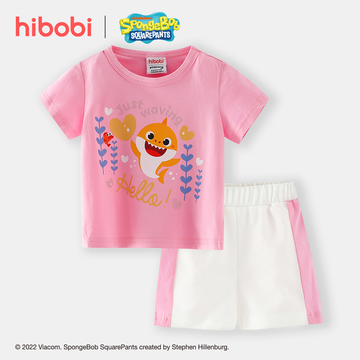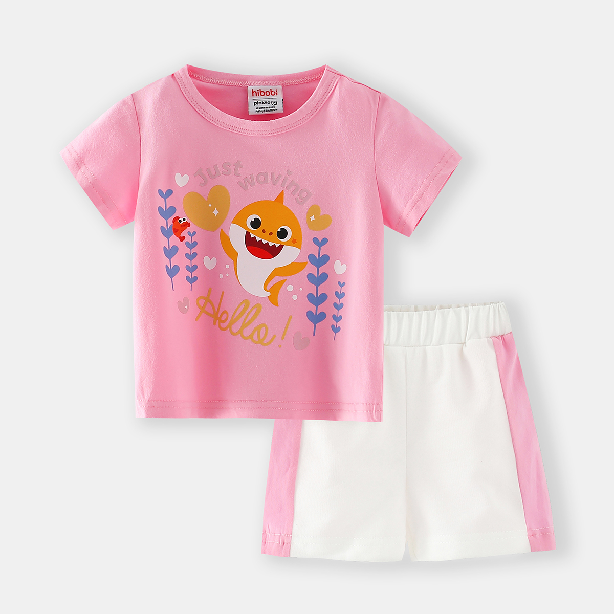 hibobi x Baby Shark Toddler Girls Cute Printing Cotton Contrast Colored Suit Wholesale