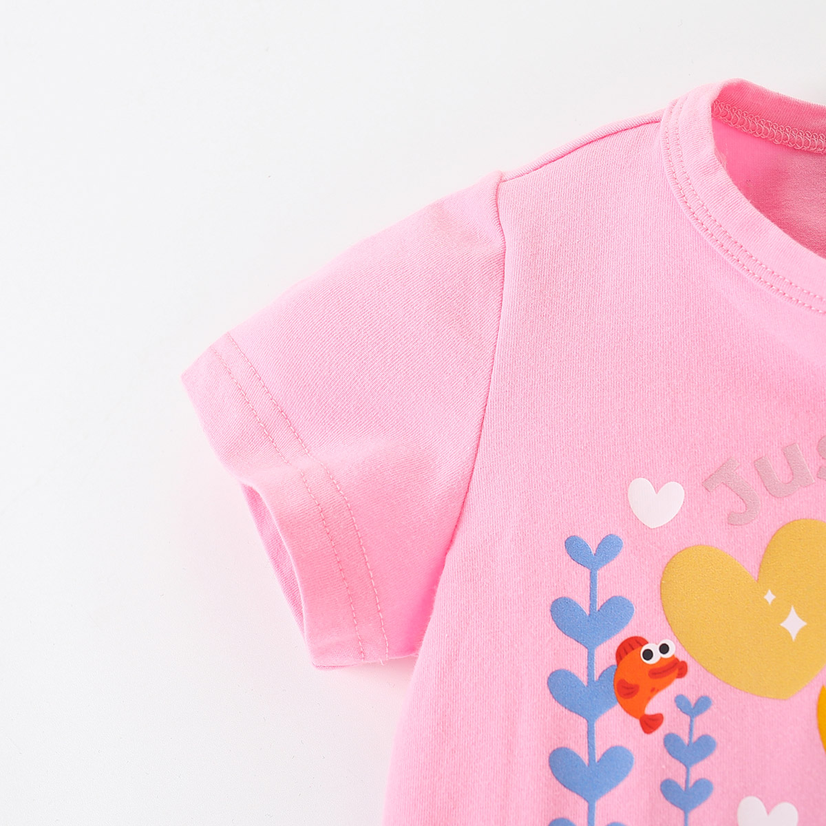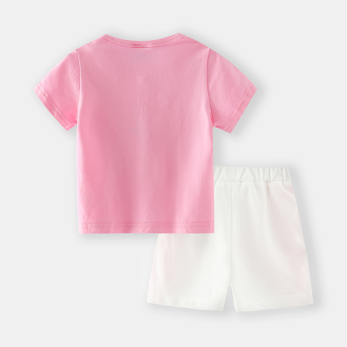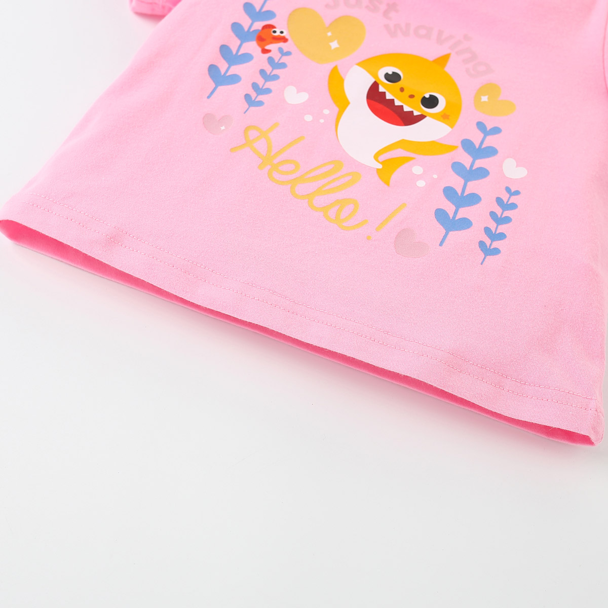 hibobi x Baby Shark Toddler Girls Cute Printing Cotton Contrast Colored Suit Wholesale
