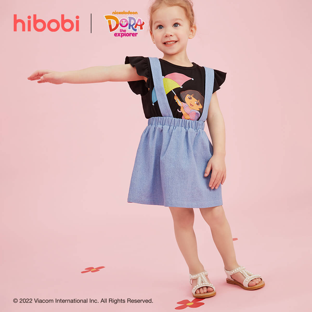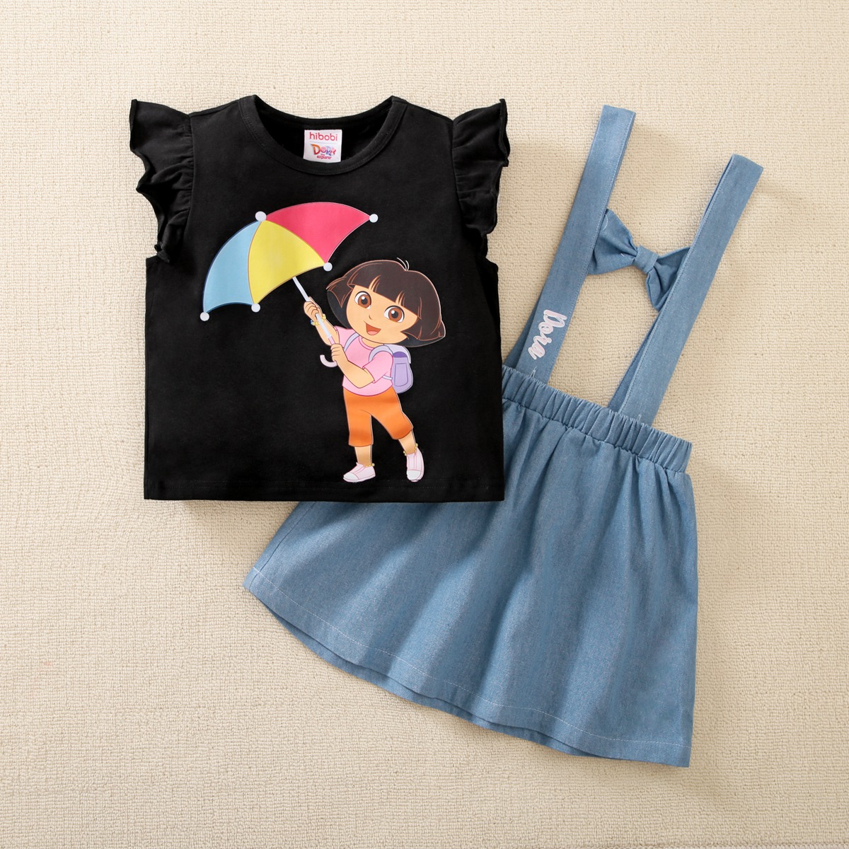 hibobi x Dora Toddler Girls Cute Sweet Printing Cotton Cartoon cowboy Dress Set Wholesale