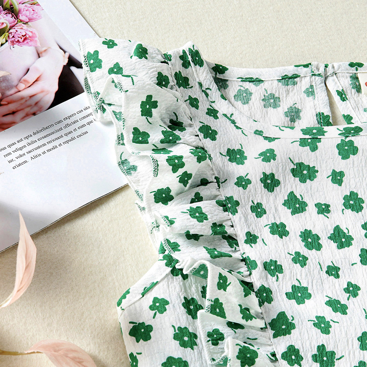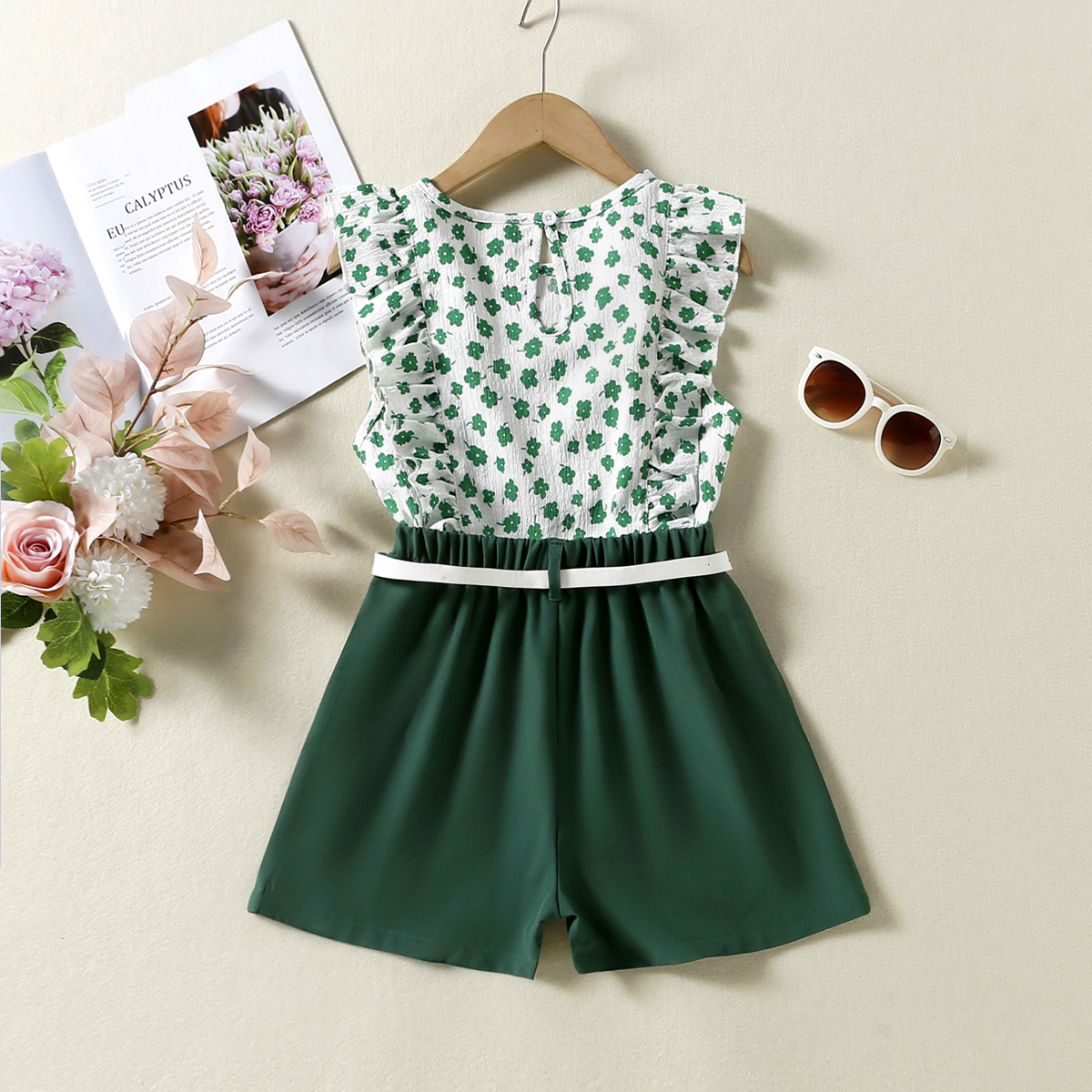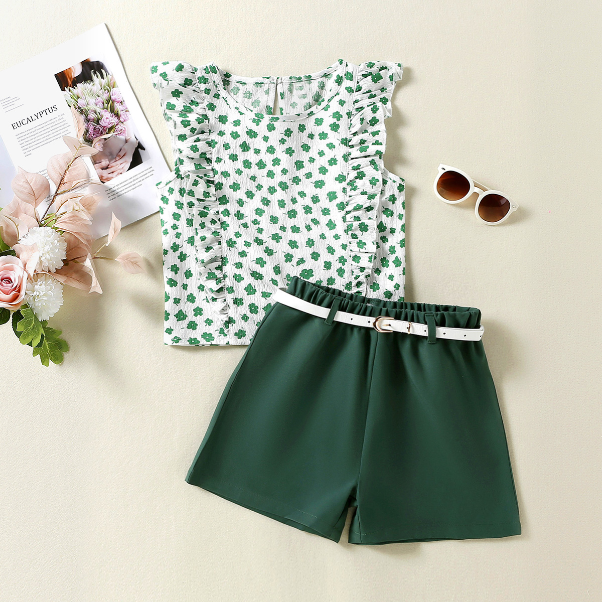 Kid Girl Small Ruffles Floral Sleeveless Top & Casual Loose A-Line Shorts Suit Wholesale