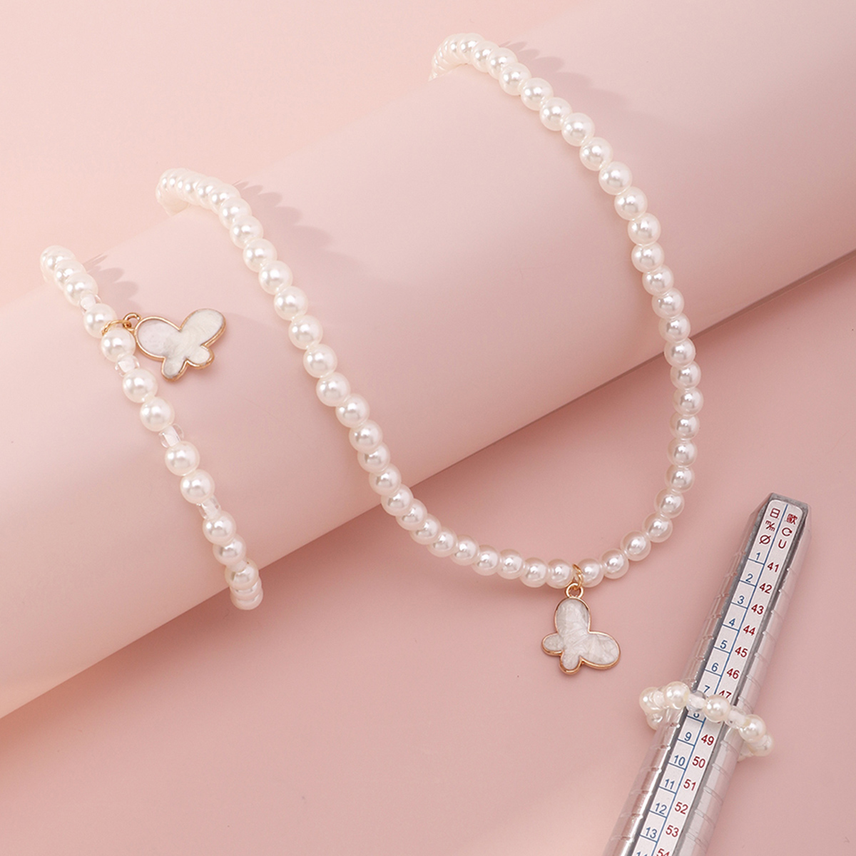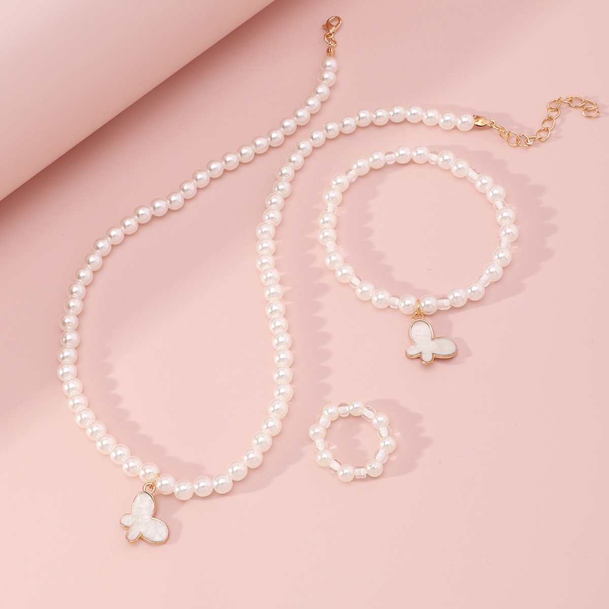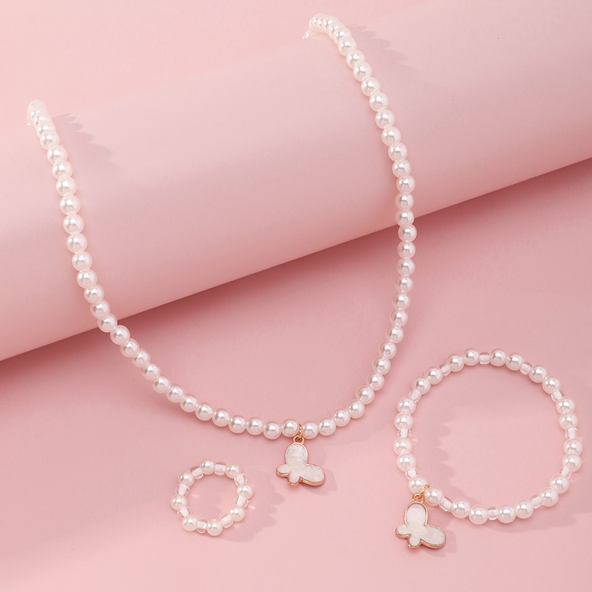 Kid Girl 5-Piece Solid Color Butterfly Pearl Jewelry Set Wholesale
