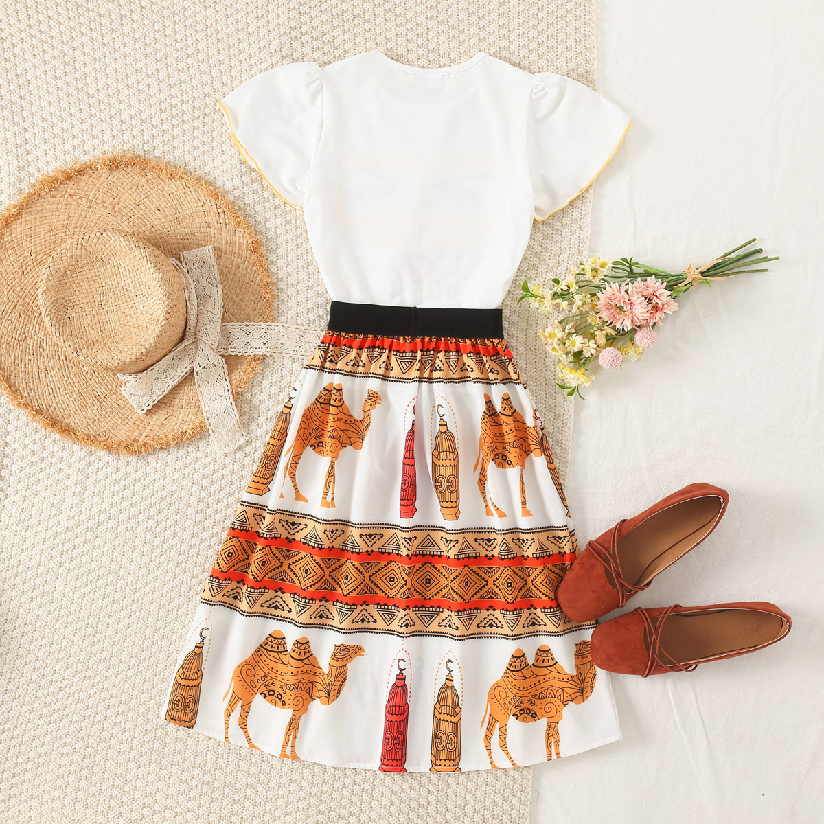 Kid Girl Cartoon Print Set Dress Wholesale