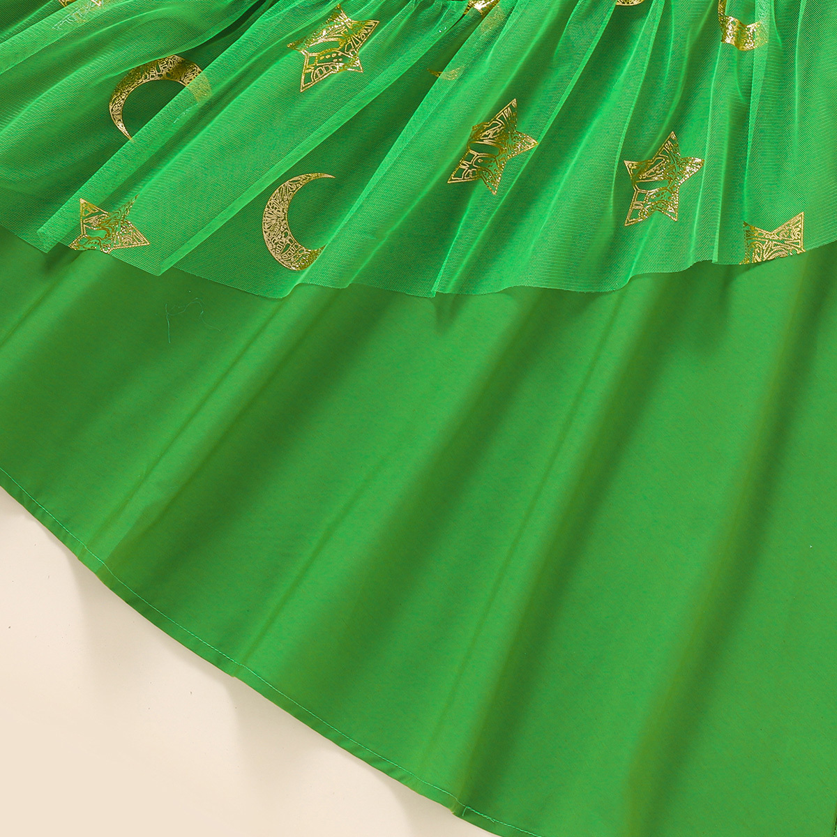 Kid Girl Moon Gold Print Mesh Dress Wholesale