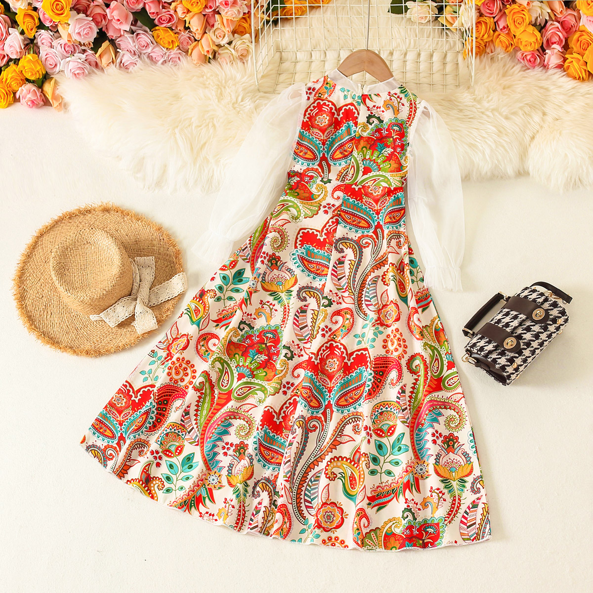 Kid Girl Paisley Pattern Print Dress Wholesale