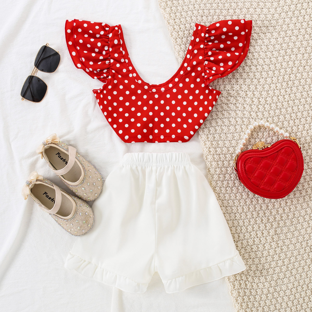 Kid Girl Polka Dot Ruffle Set Wholesale
