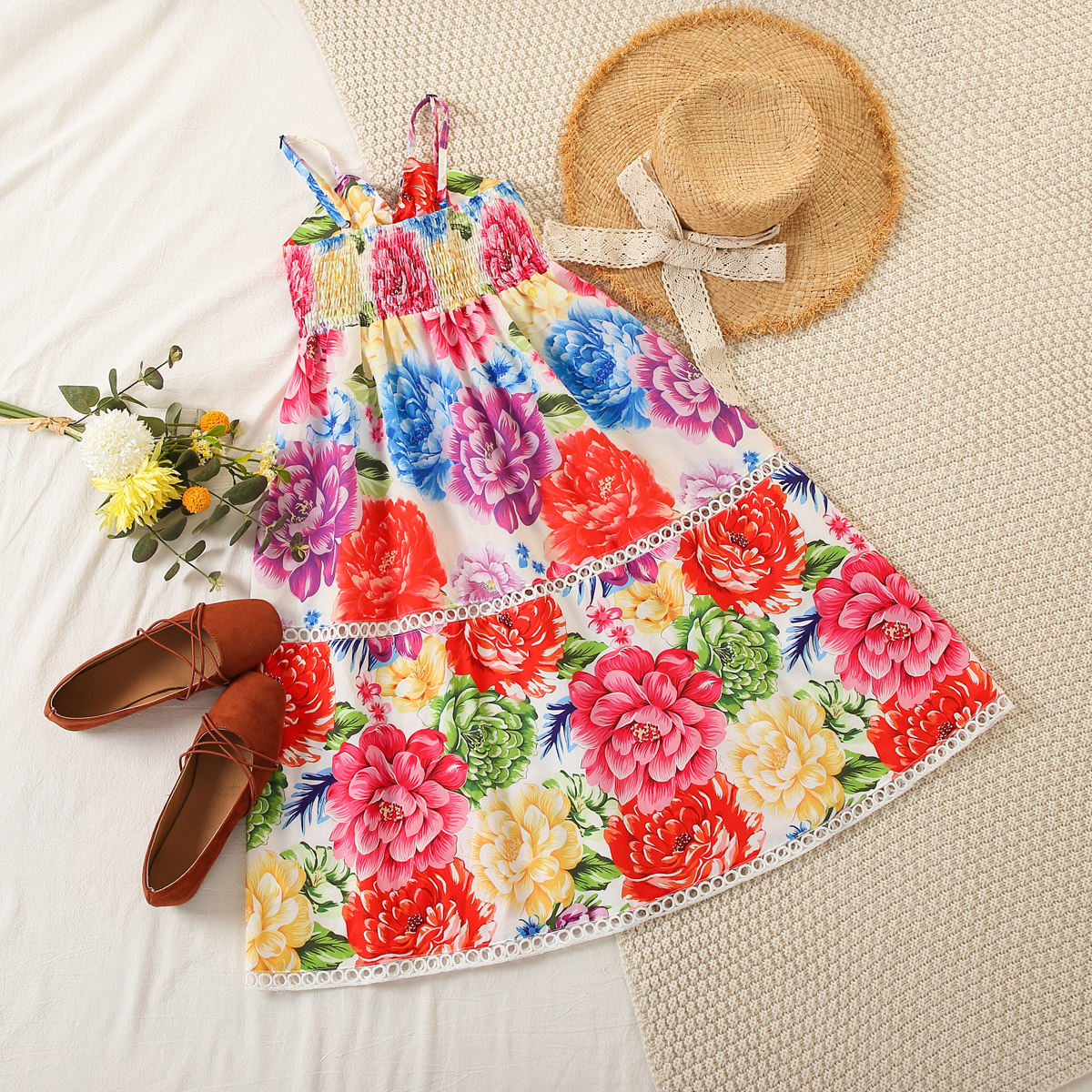 Kid Girl Rose Print Dress Wholesale