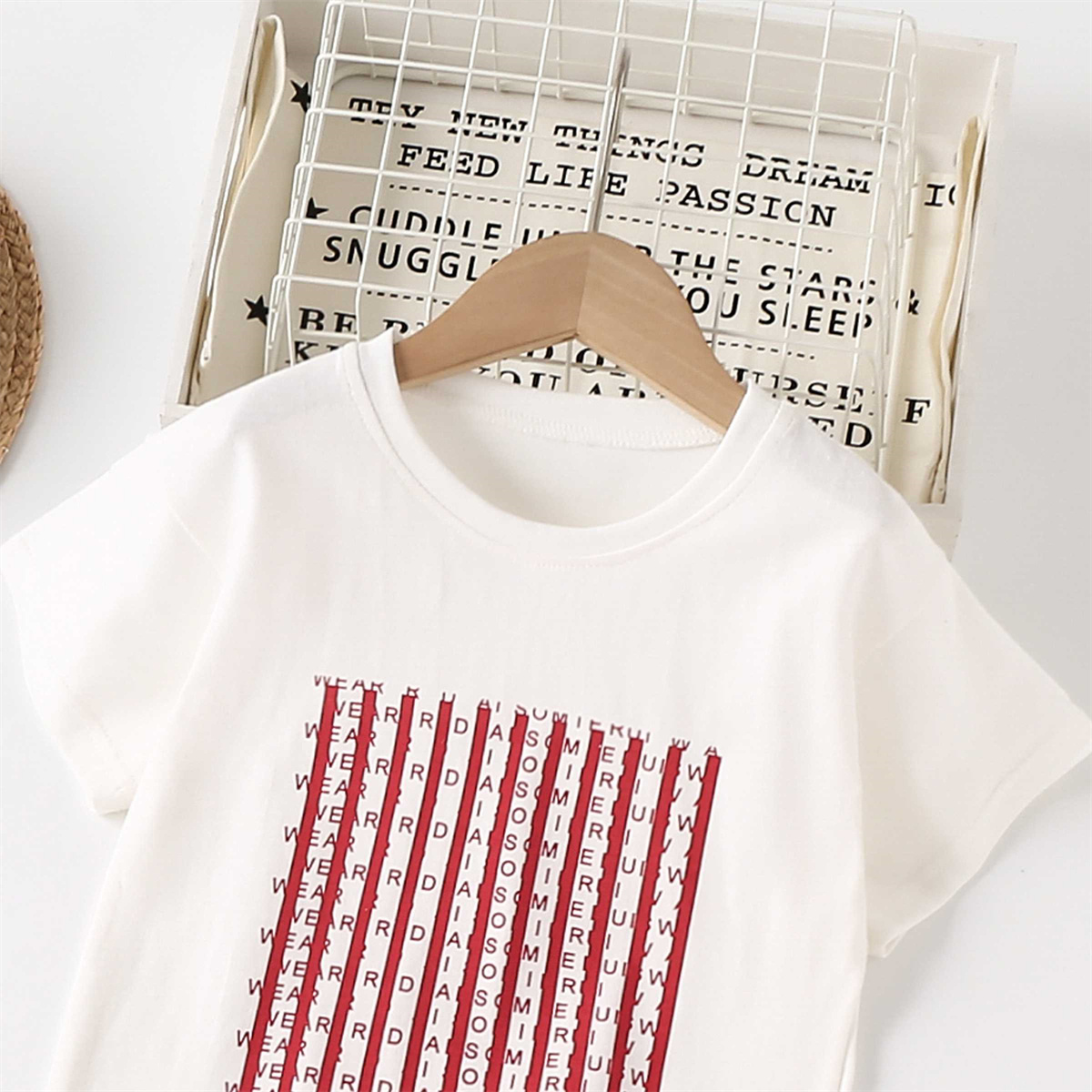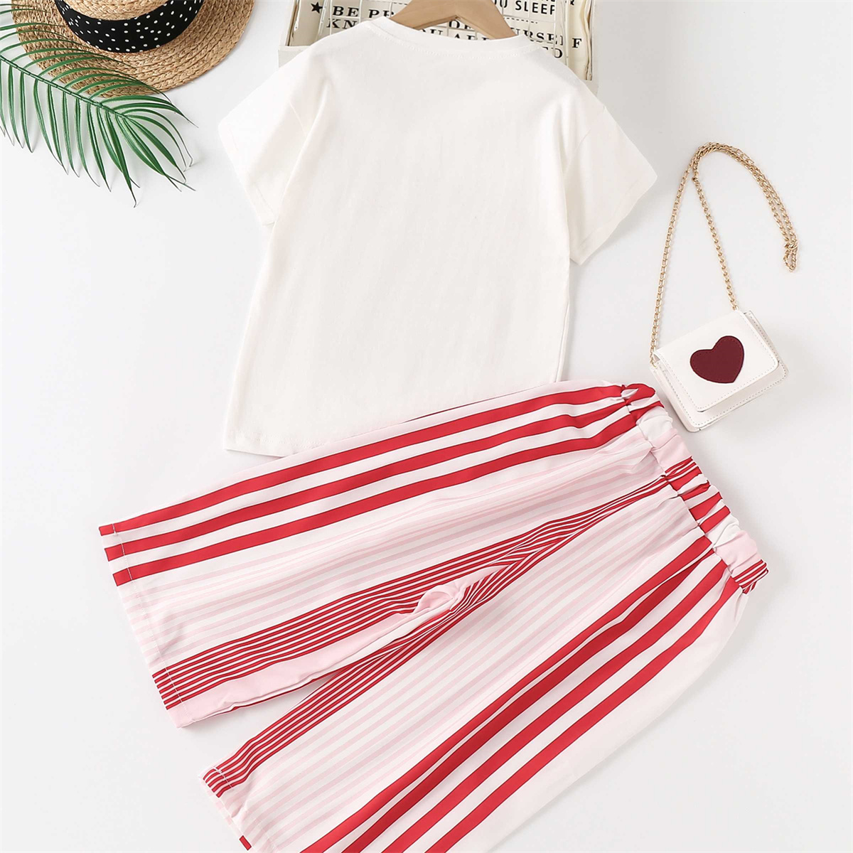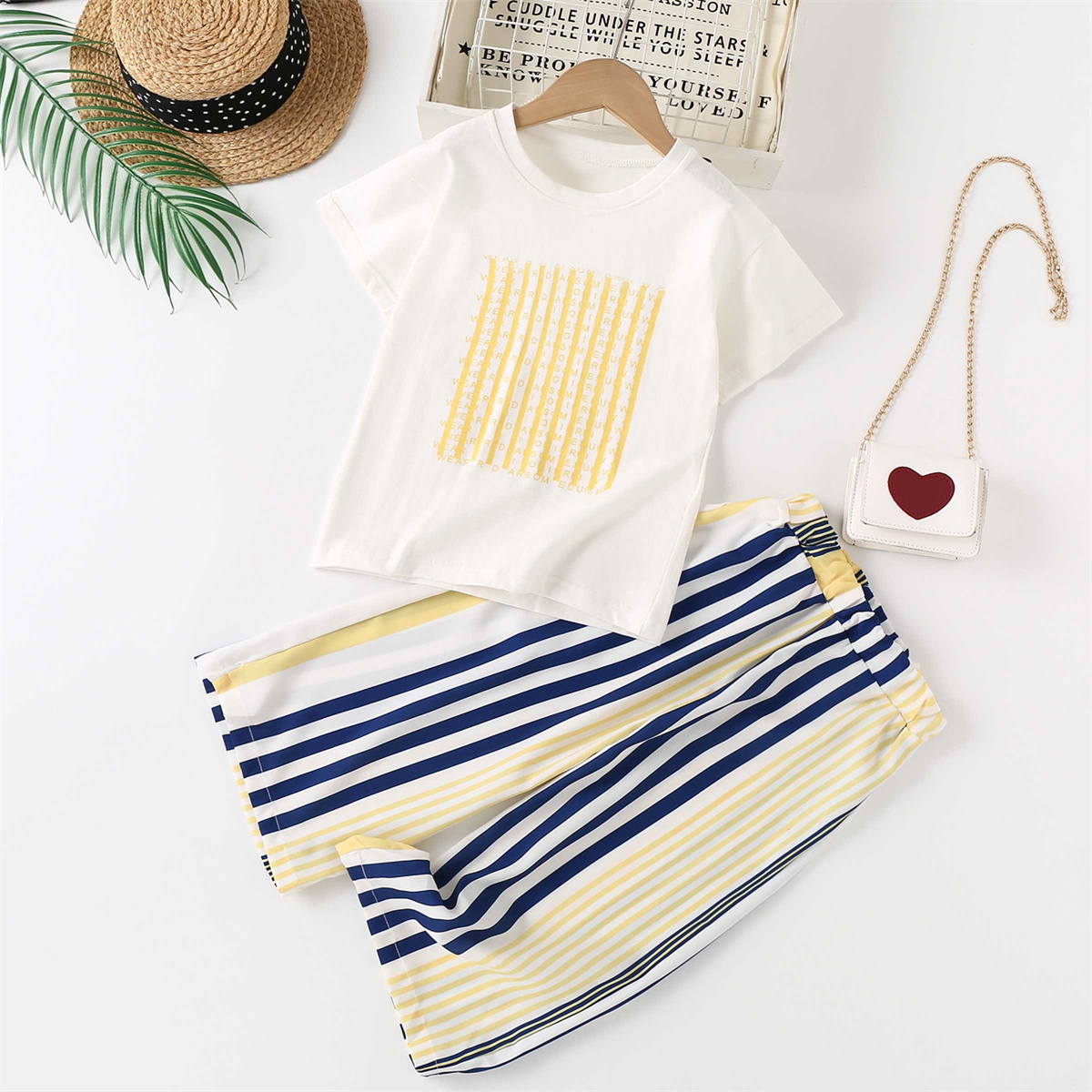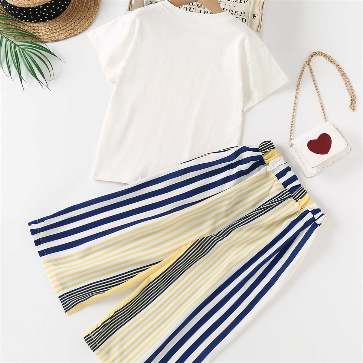 Kids Girls Grid T-shirt&striped trouser suit Wholesale
