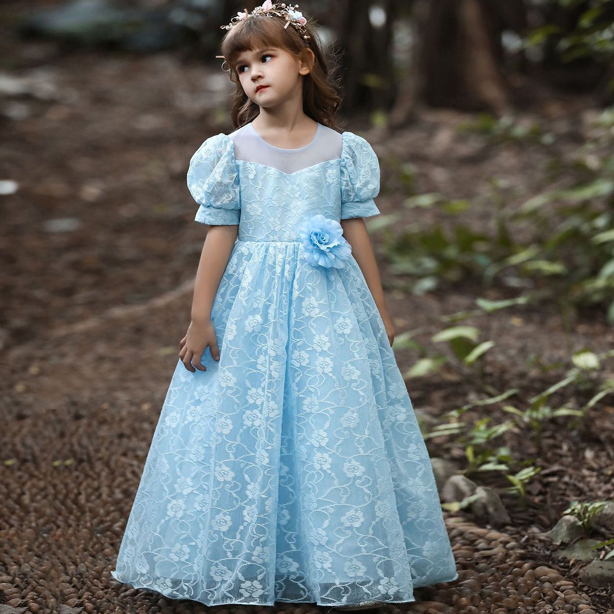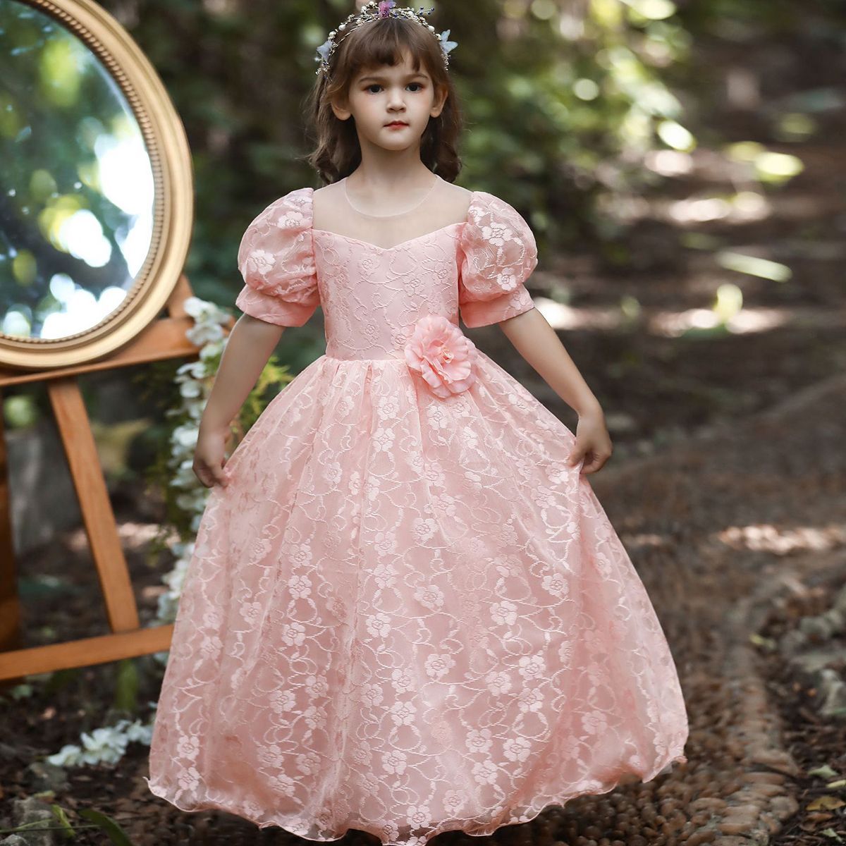 Kids Girls Patchwork Mesh Catwalk flower girl Princess Dress Wholesale