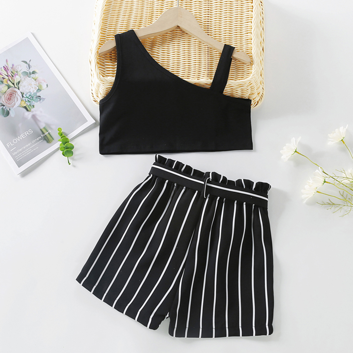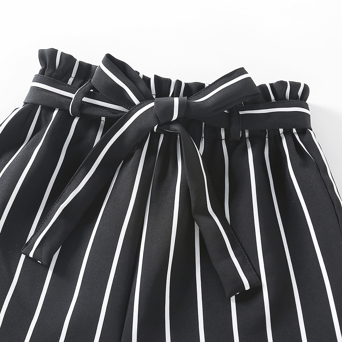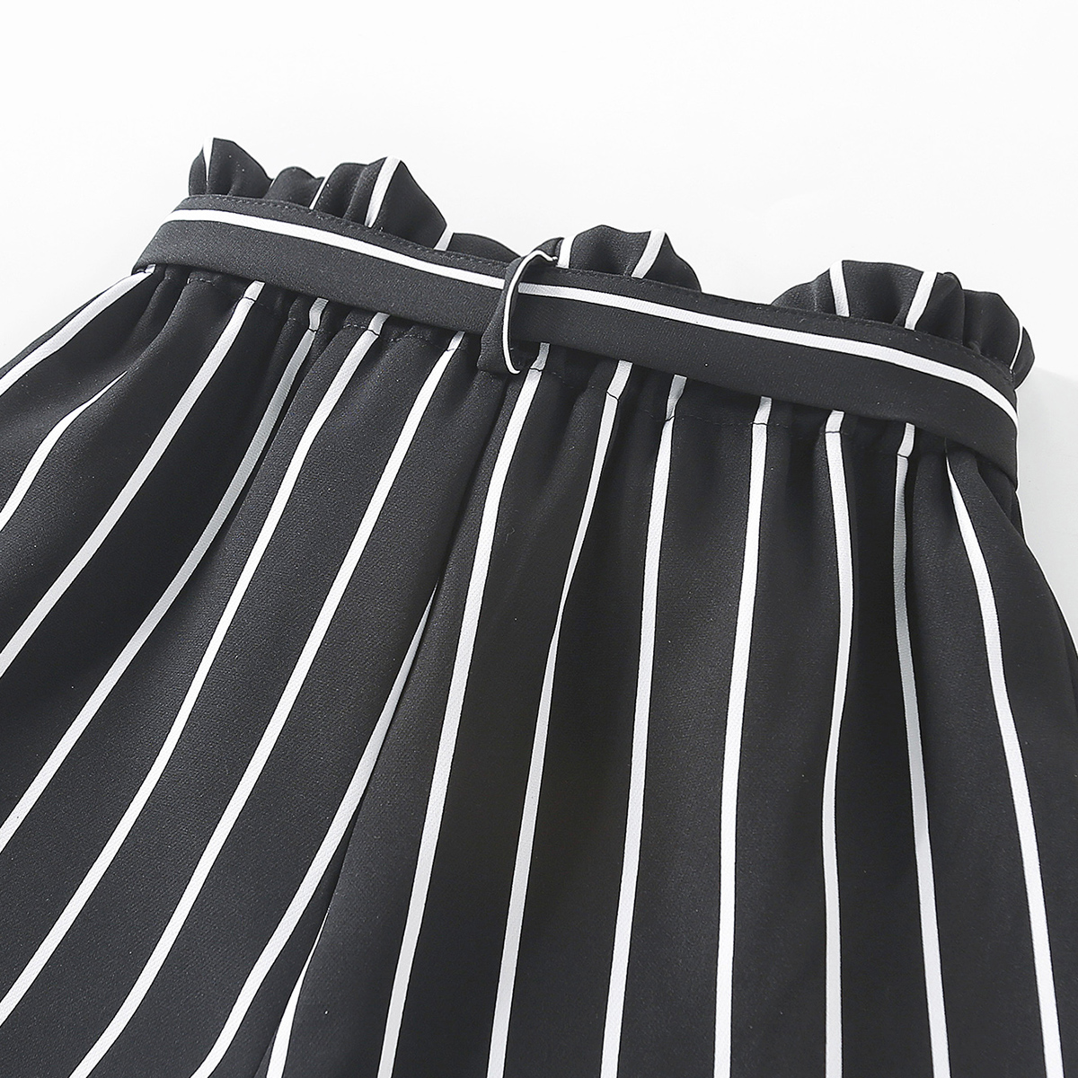 Kids Girls personality Sling Shoulder Strap & Black and White Striped Casual Shorts Suit Wholesale