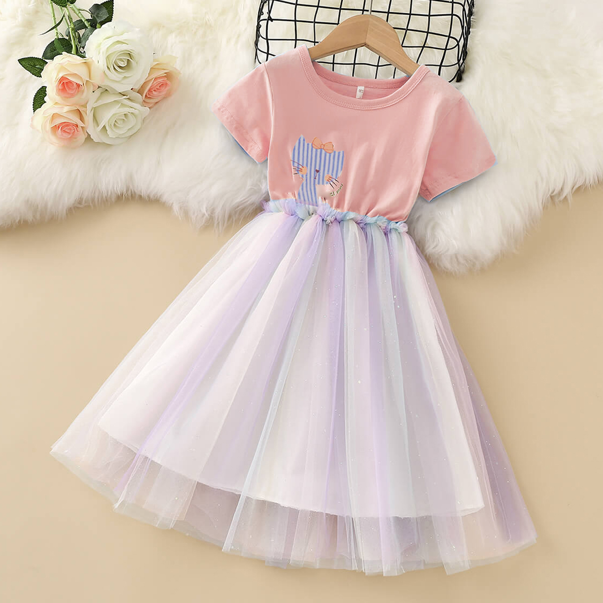 Kids Girls Summer Cat Print Veil Princess Dress Wholesale