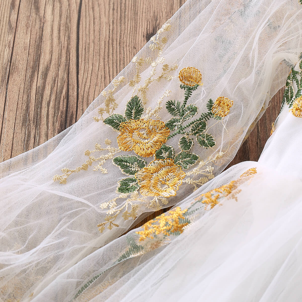 Kids Girls Sweet Princess Floral Embroidery Gauze Princess Dress Wholesale
