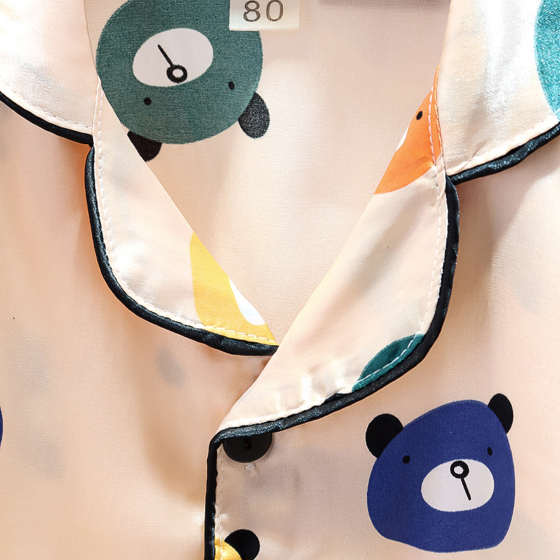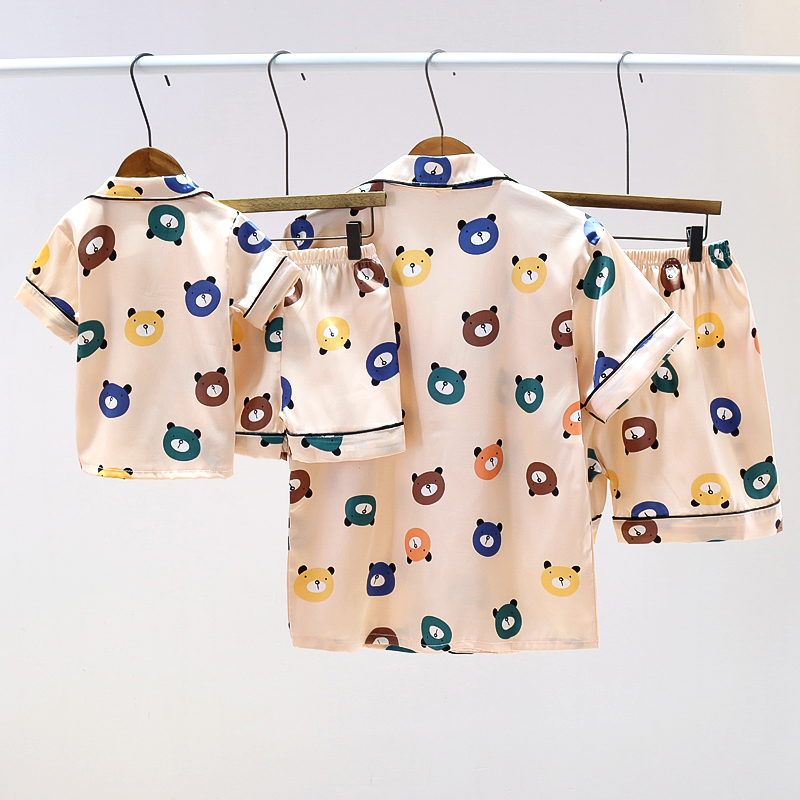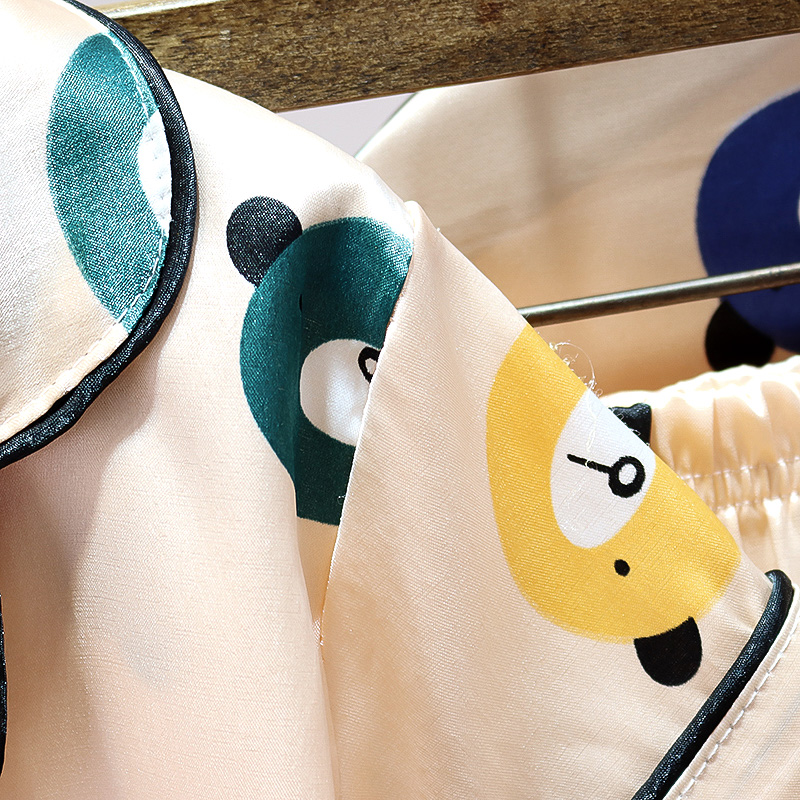 Satin Fabrics Silk-like Cartoon Printed Pajamas Mother Baby Clothes Wholesale