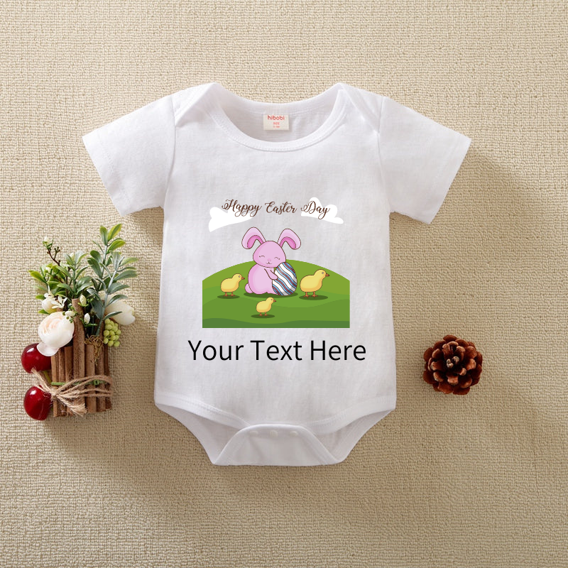Solid Color Short-sleeved Triangle Jumpsuit for Baby wholesale Easter Day Image Text