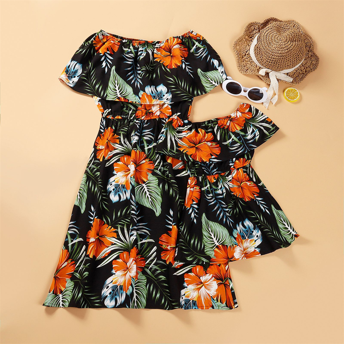 Sweet Floral Print One-shoulder Dress for Mom and Me Wholesale