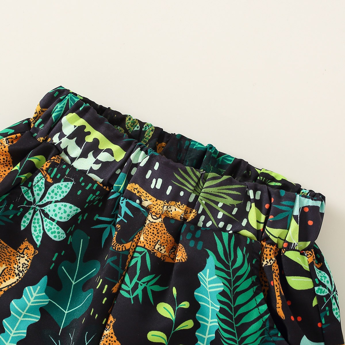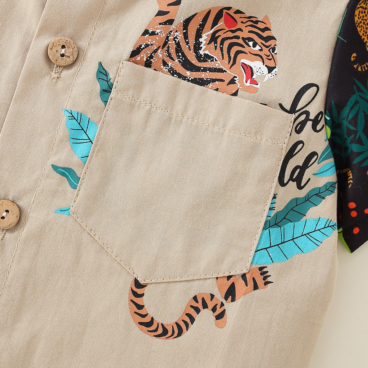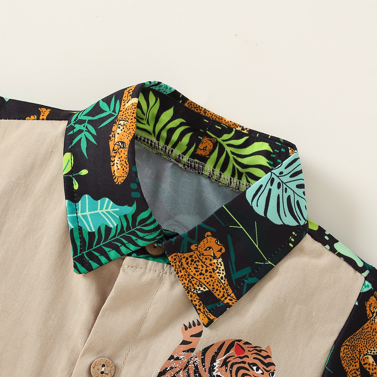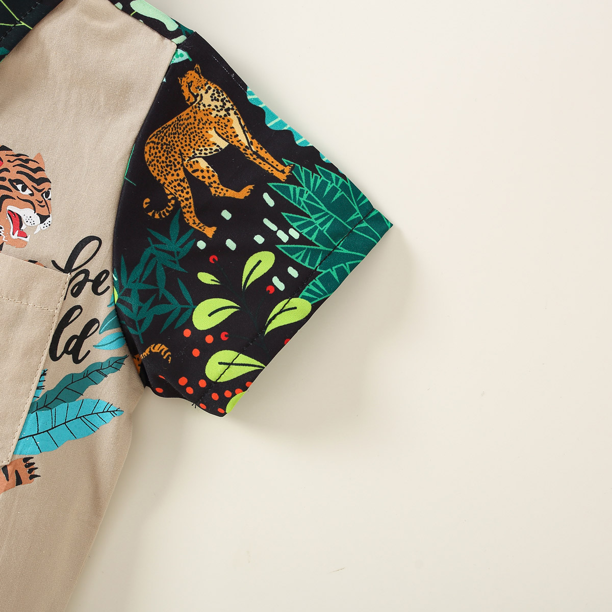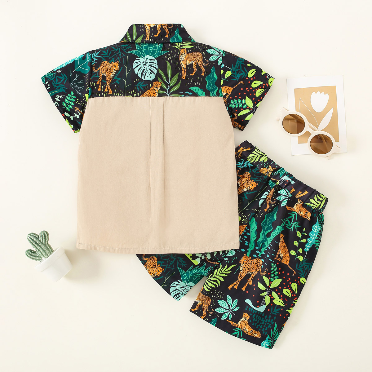 Toddler Boy Casual Floral Fabric Blocking Shirt & Shorts Wholesale