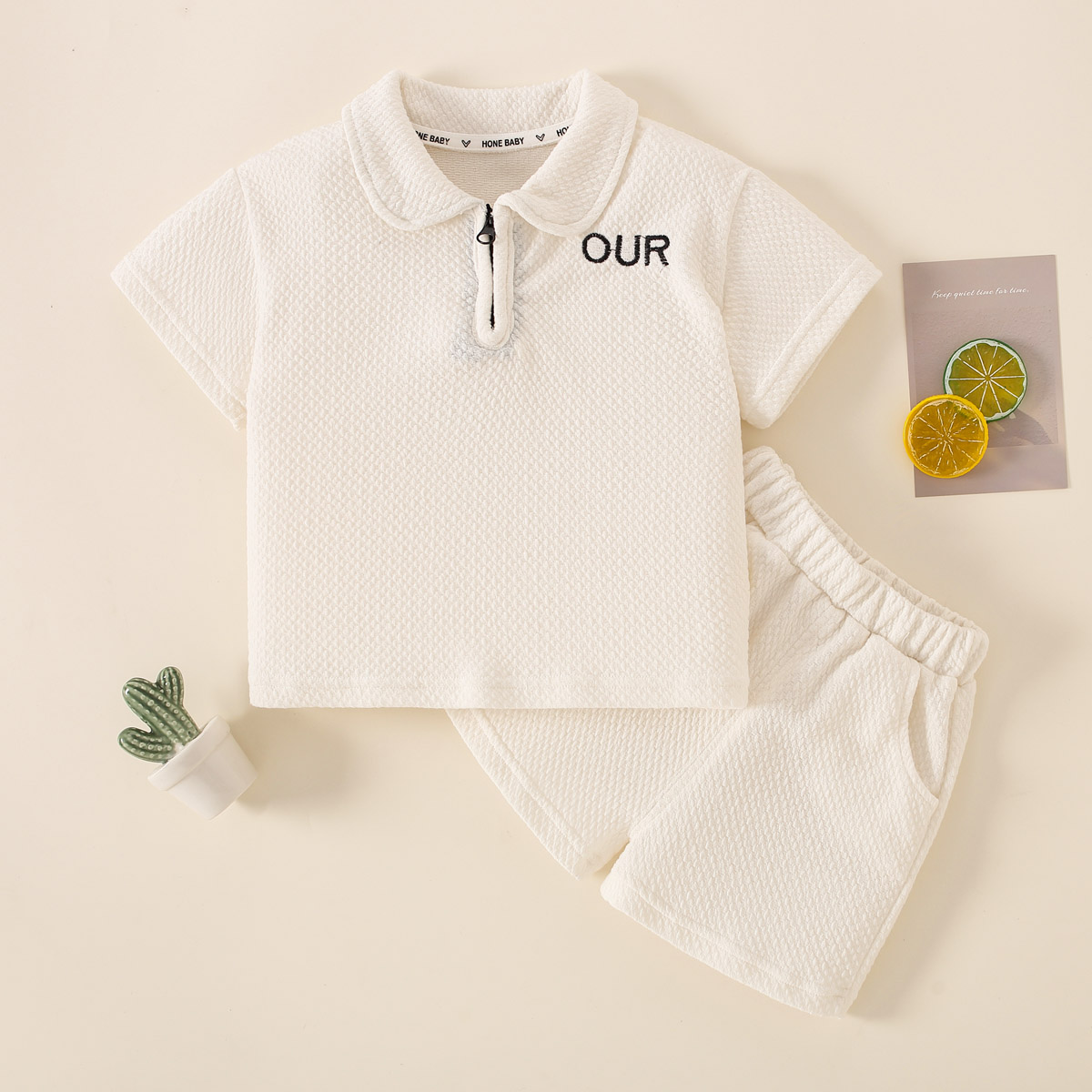 Toddler Boy Casual Solid Color Letter Print Polo Shirt & Shorts Wholesale