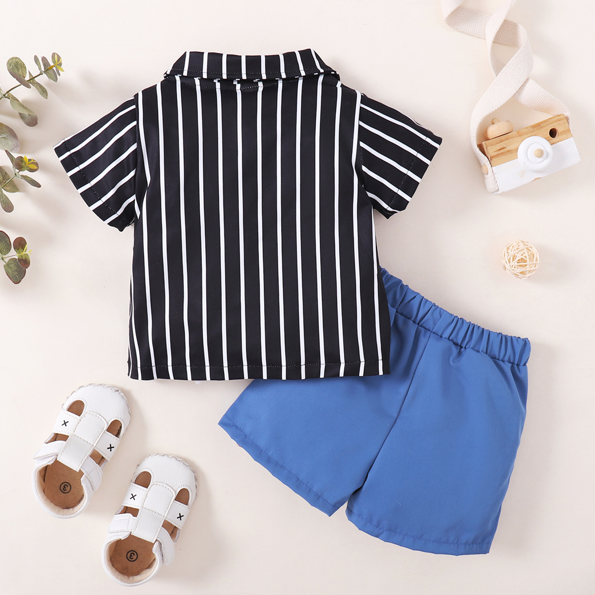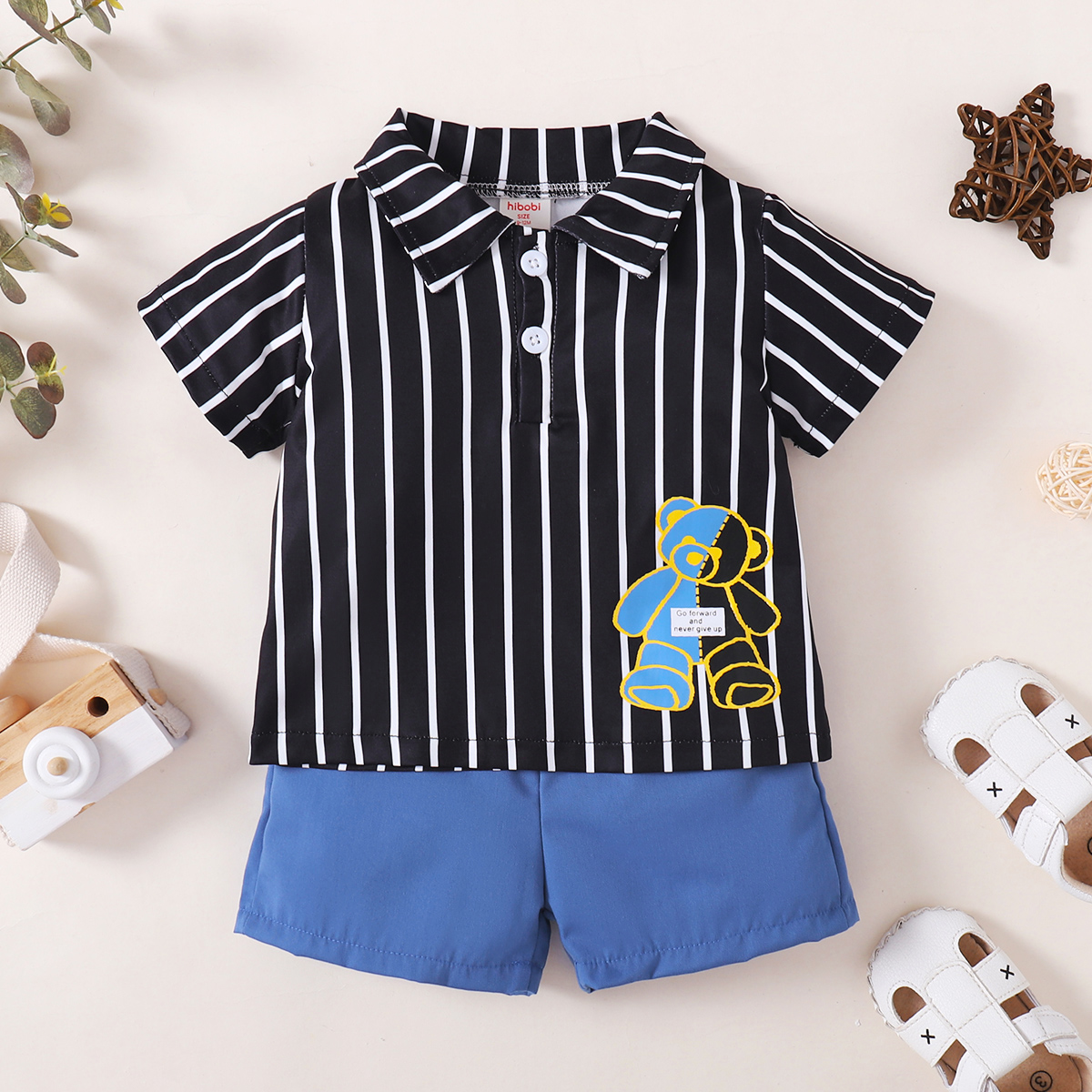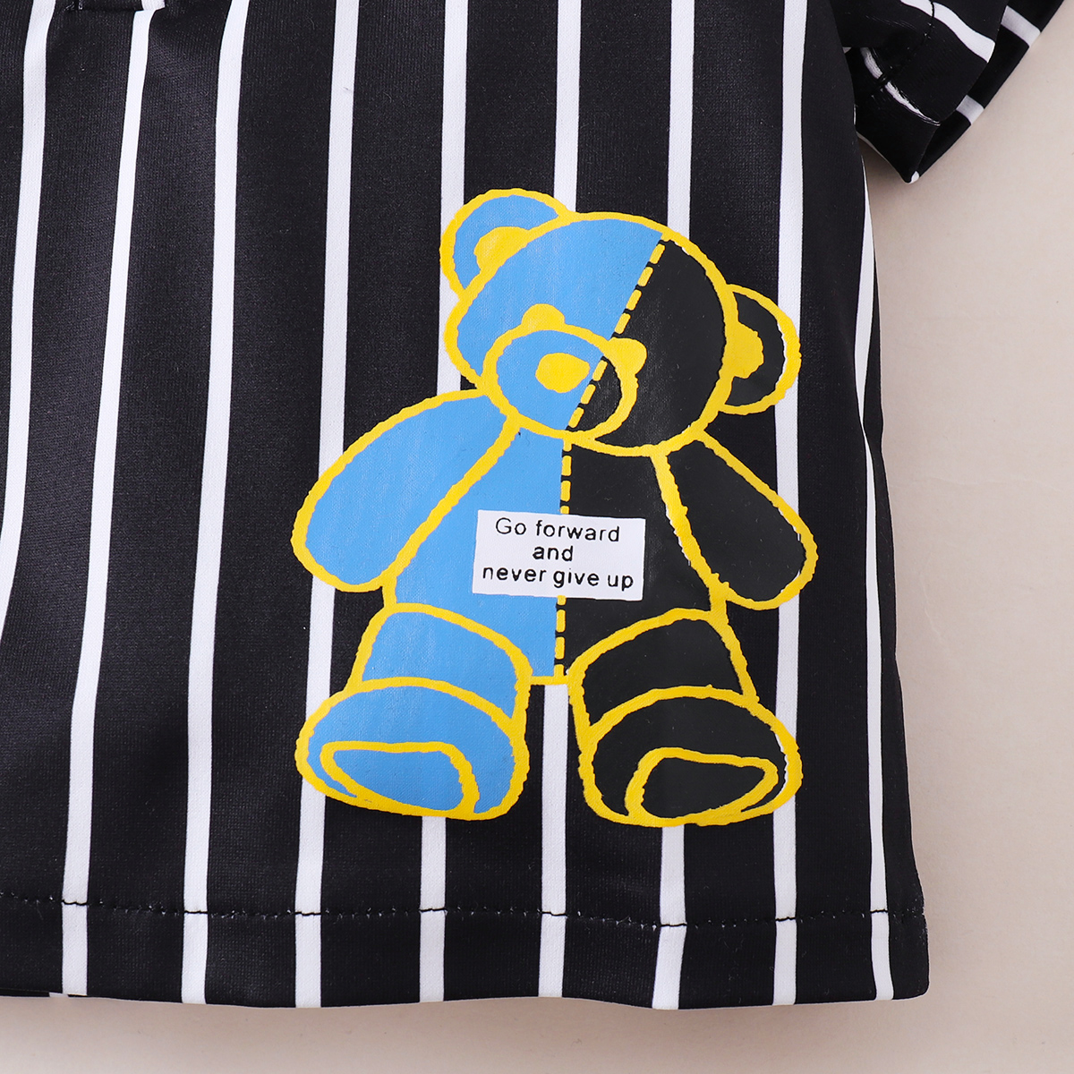 Toddler Boy Cotton Cartoon Stripes Solid Bear Top & Shorts Wholesale