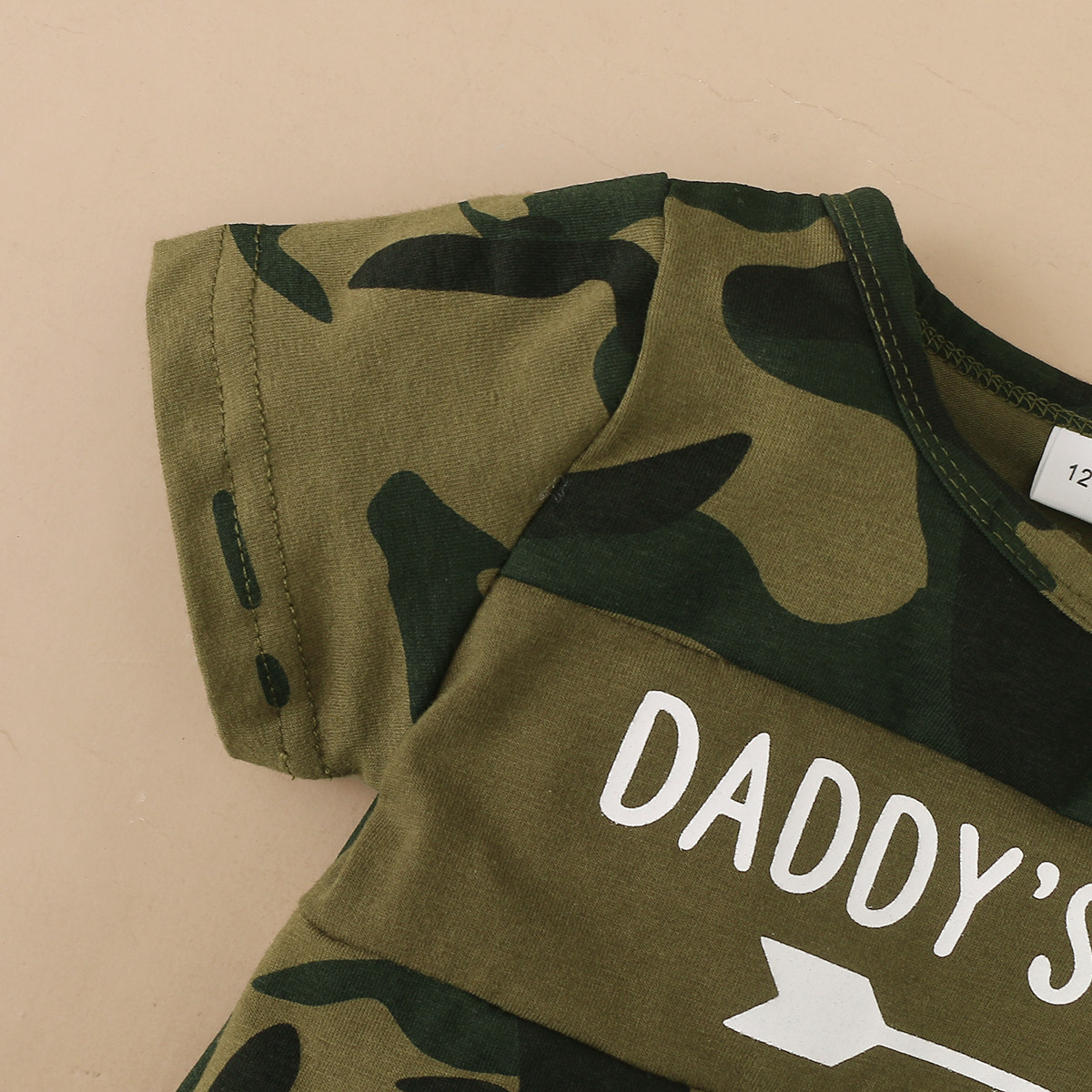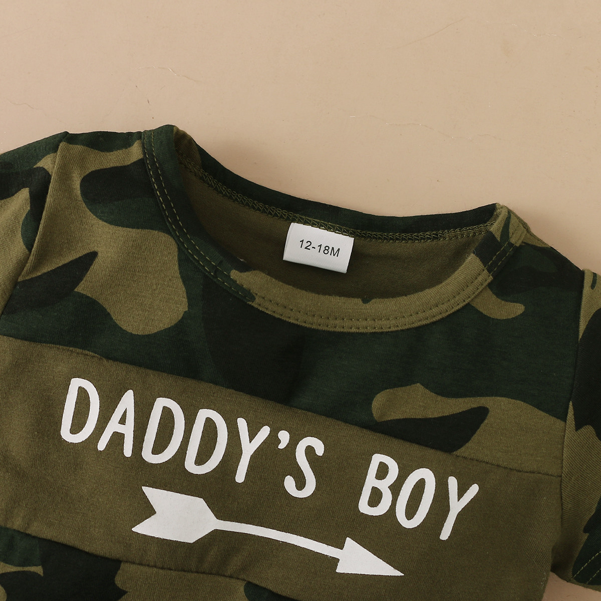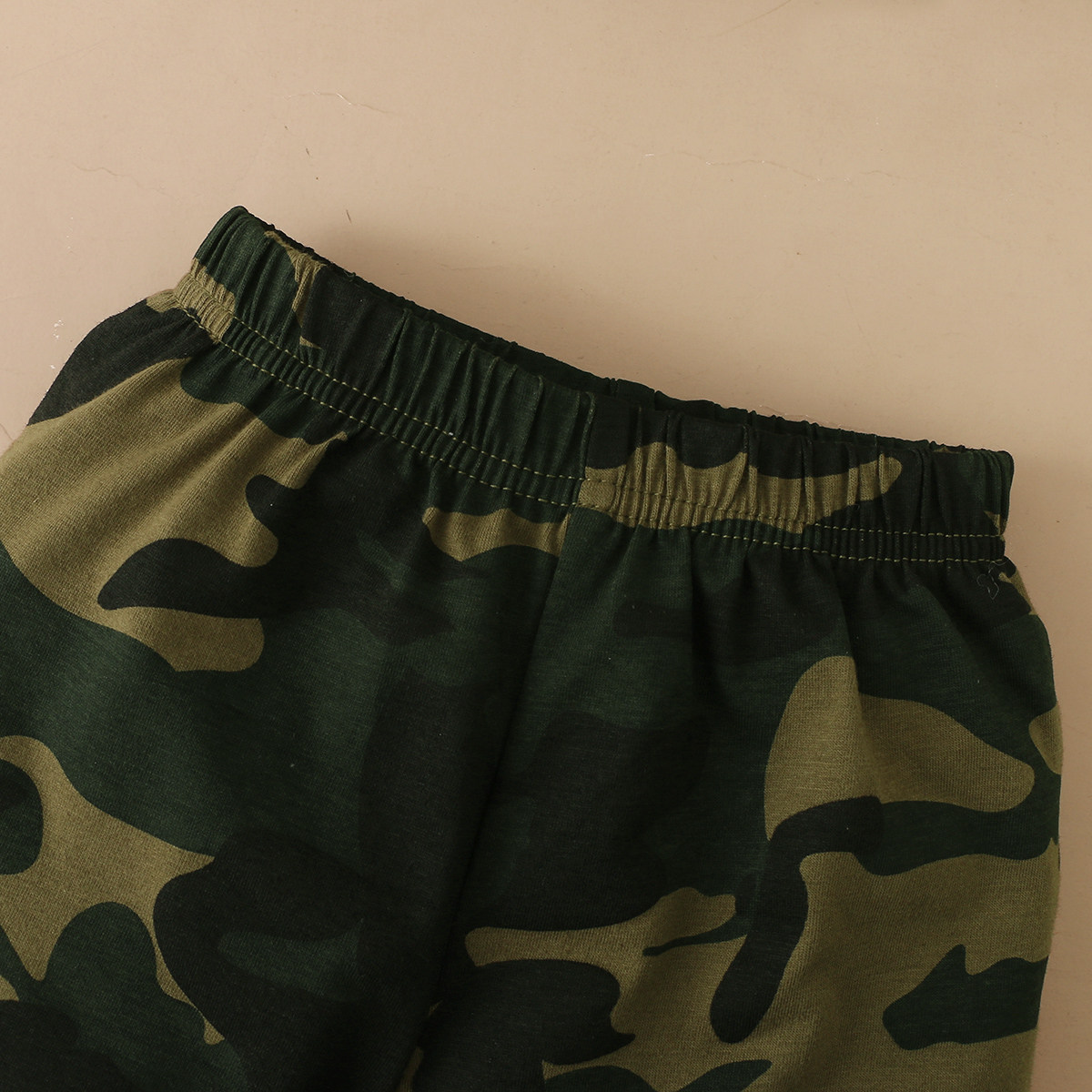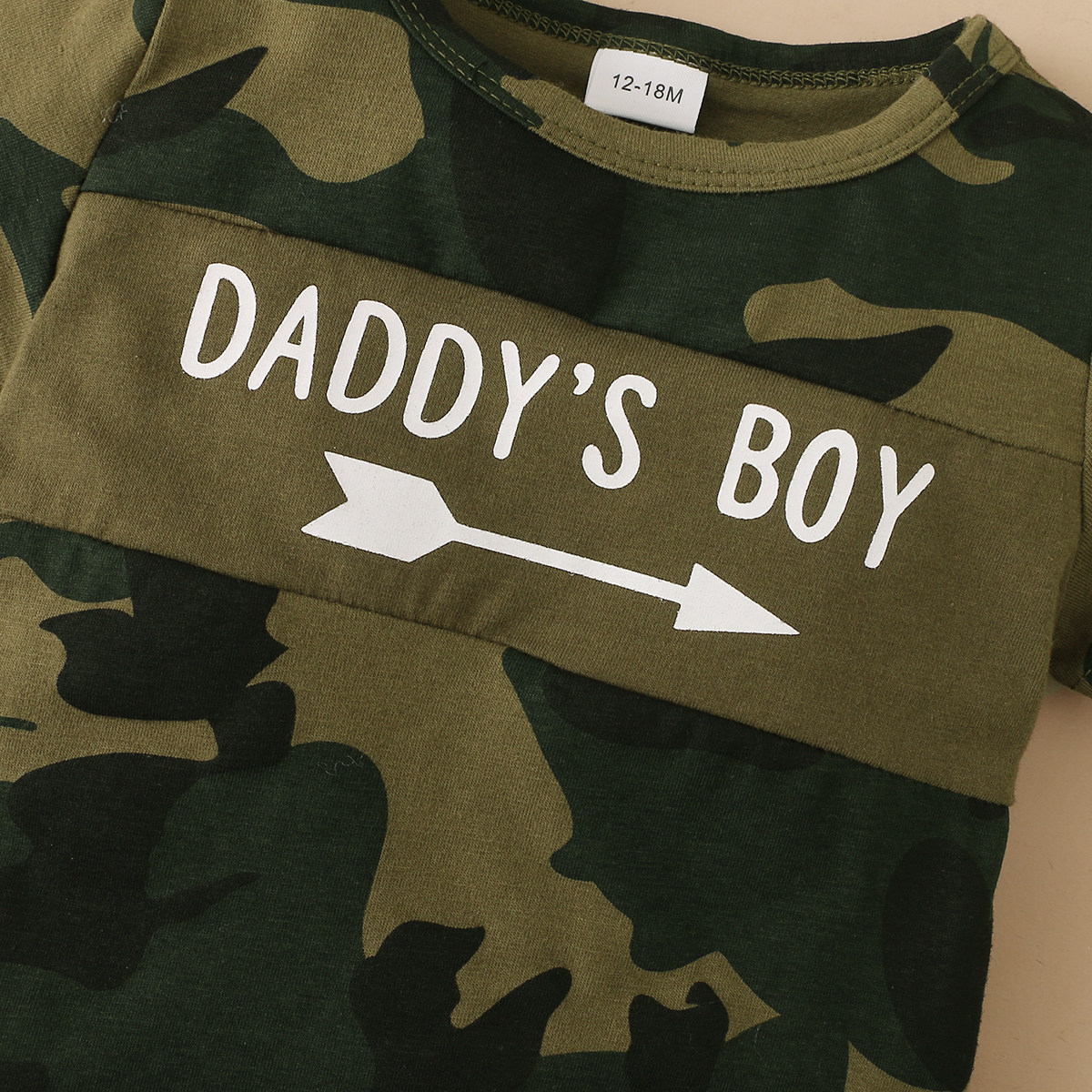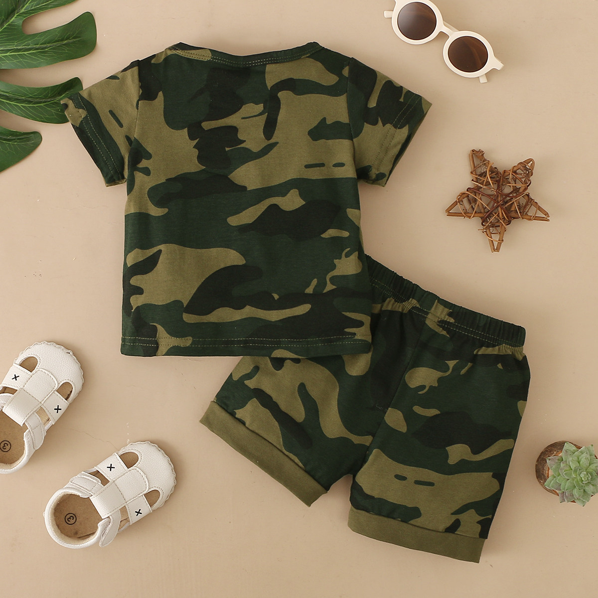Toddler Boy Letter Camouflage Patchwork Print Top & Shorts Wholesale