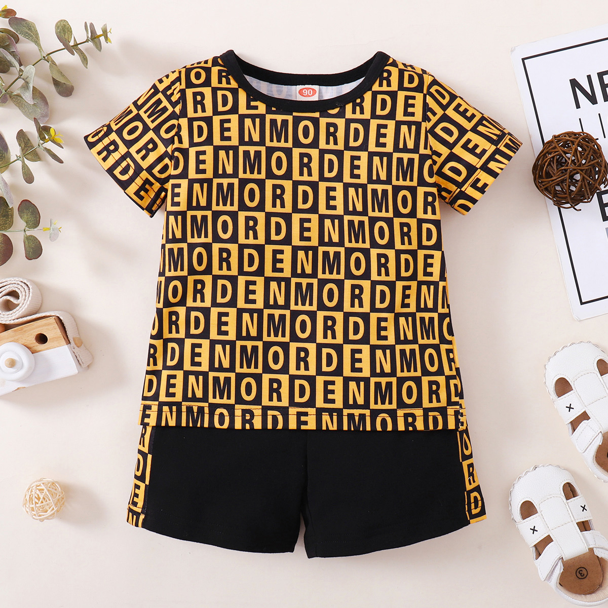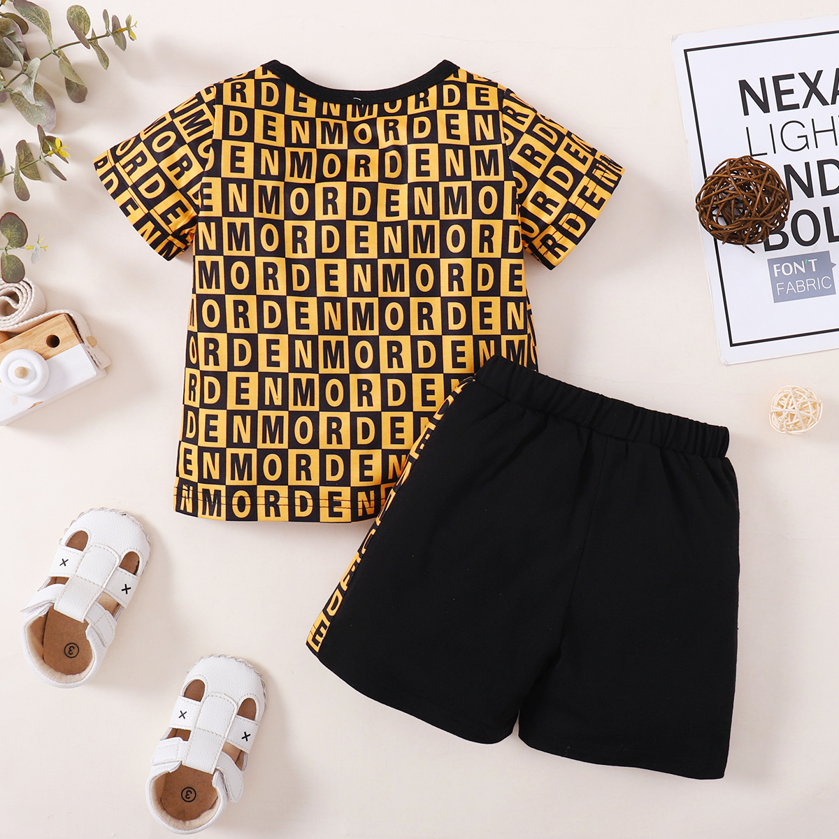 Toddler Boy Letter Plaid Color-block Top & Shorts Wholesale