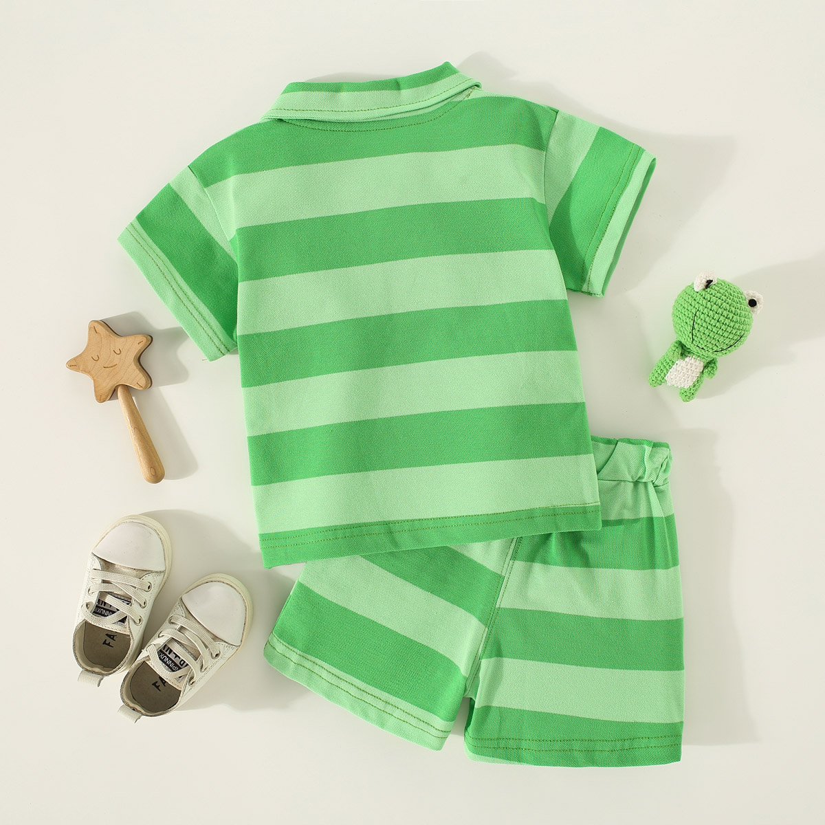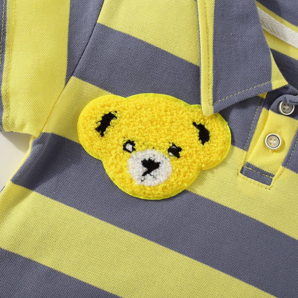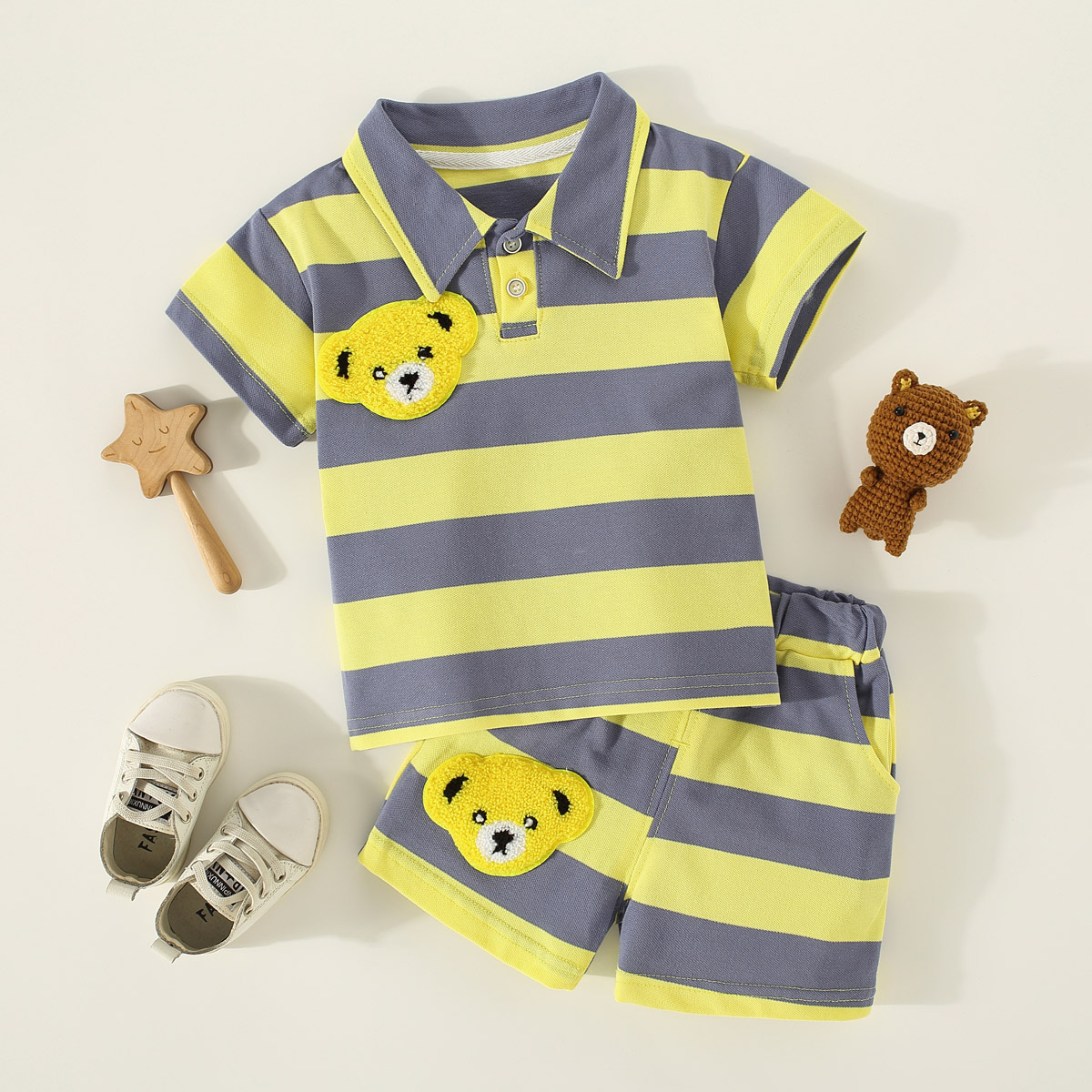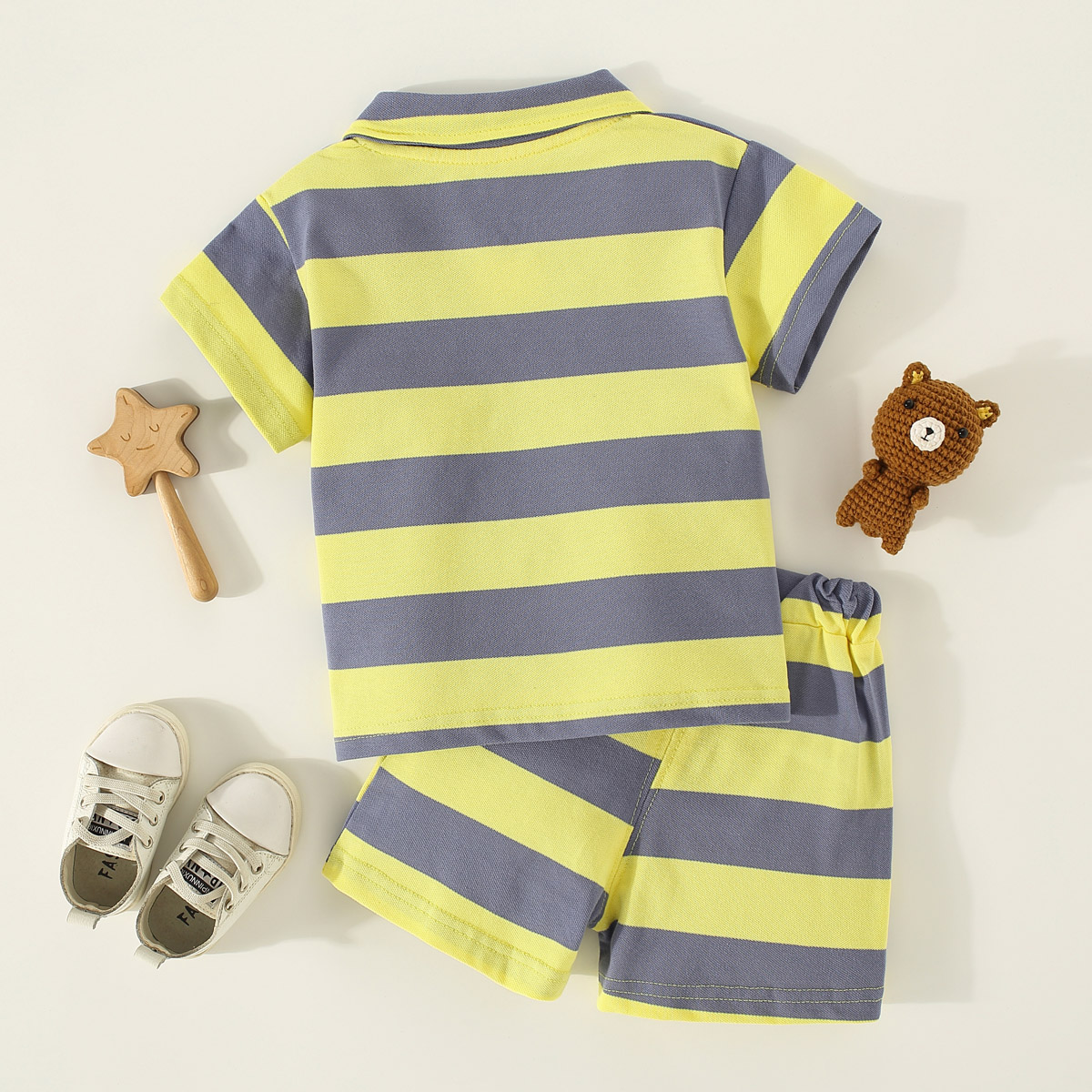 Toddler Boy Polo Collar Cartoon Stripes Color-block Top & Shorts Wholesale