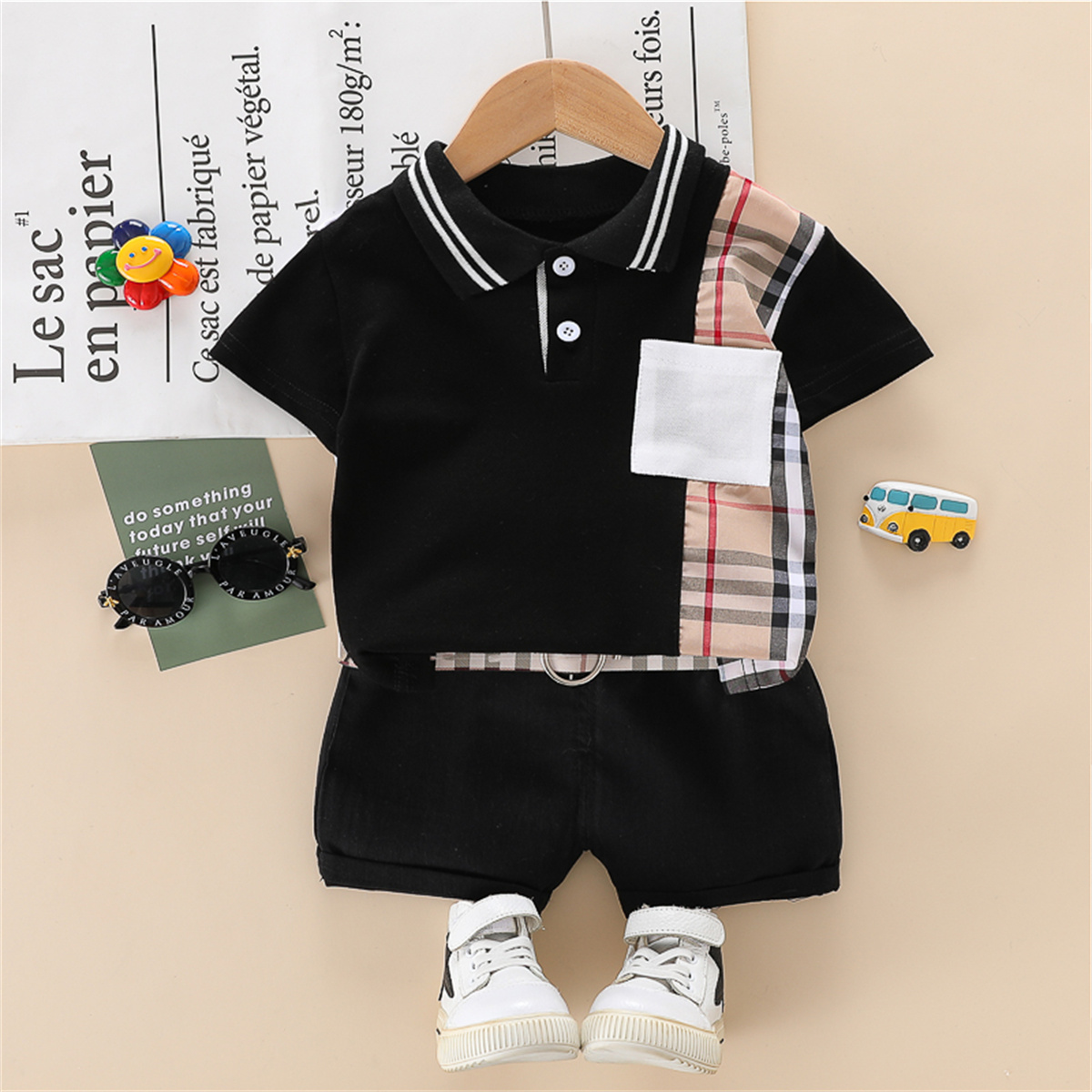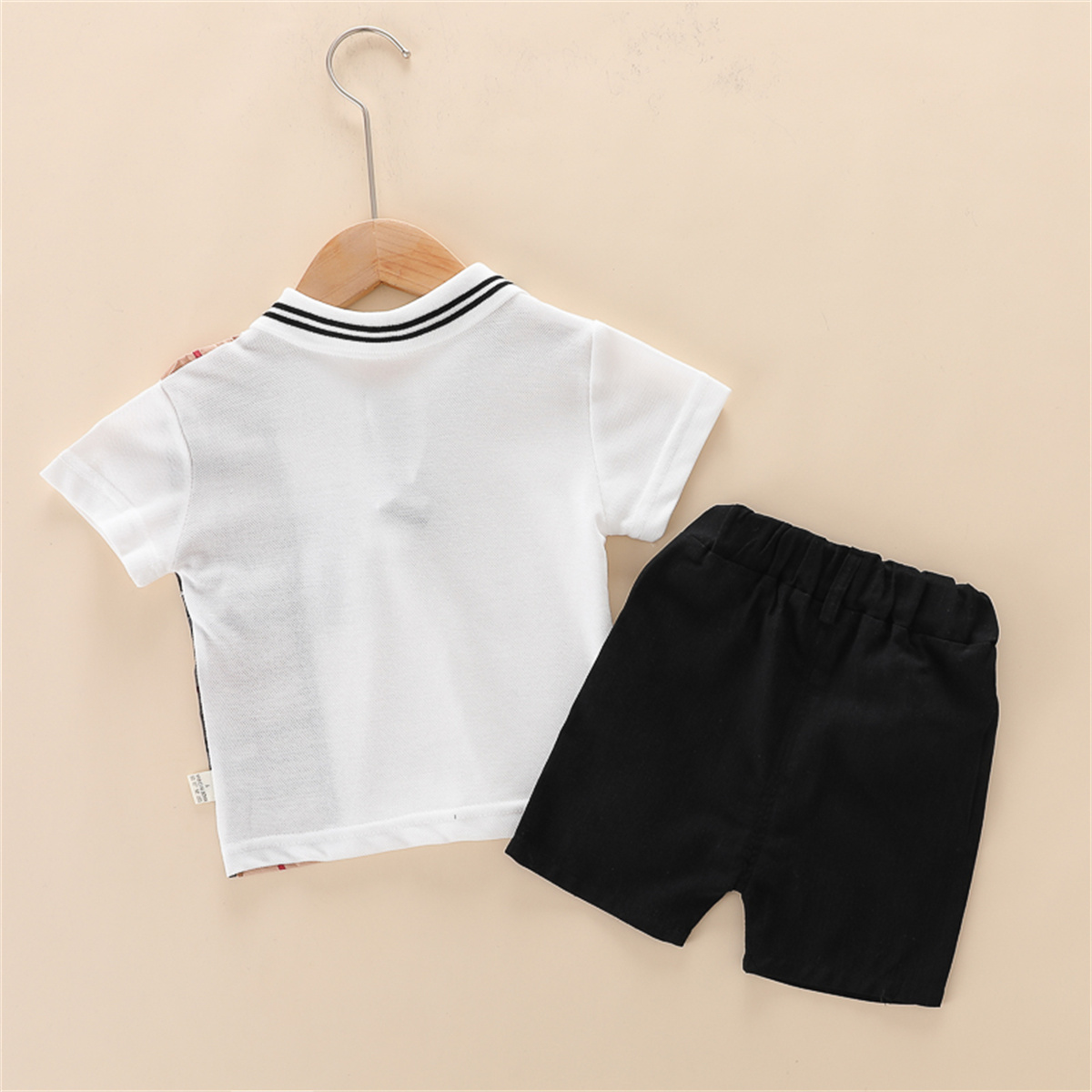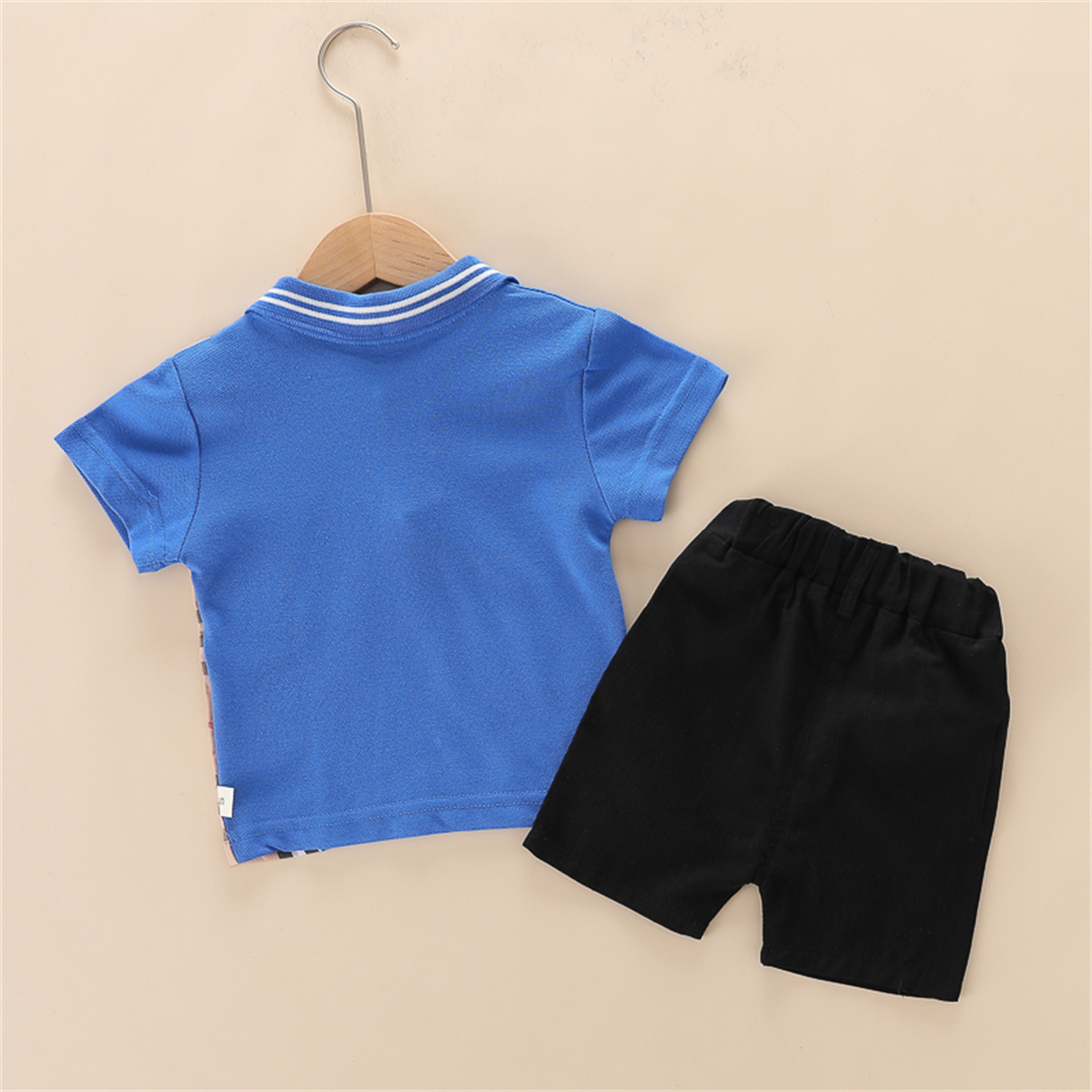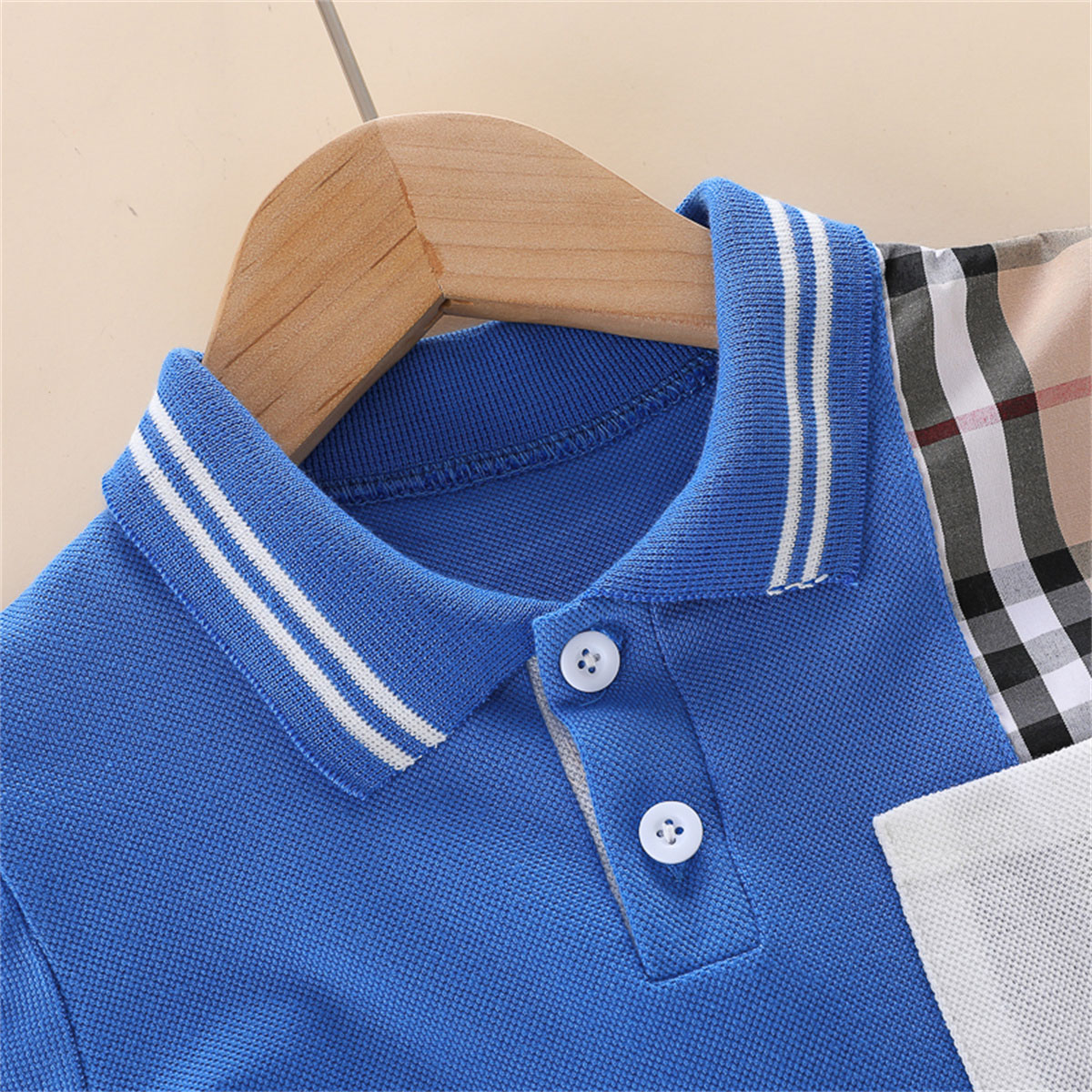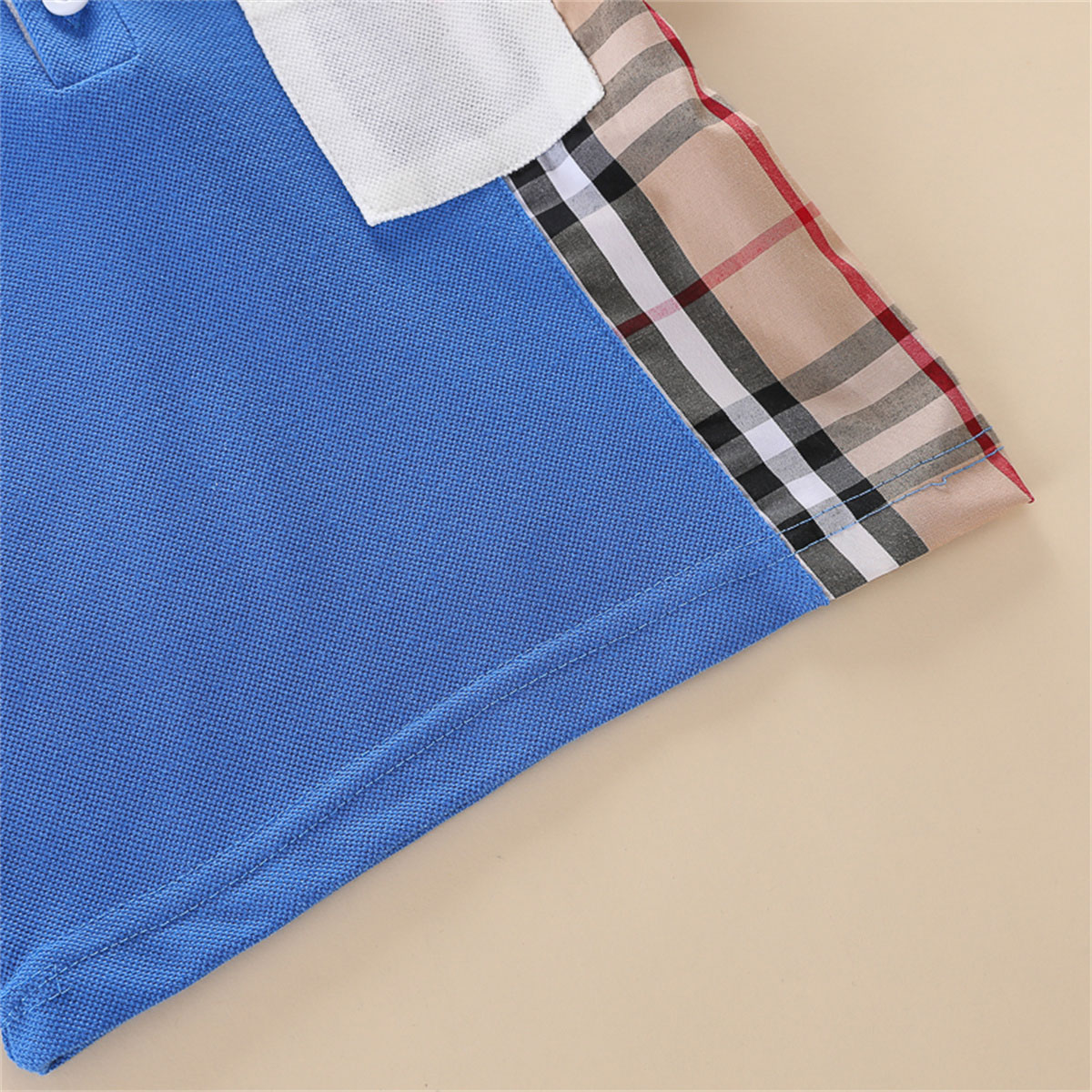 Toddler Boy Polo Collar Patchwork Color-block Plaid Top & Shorts Wholesale
