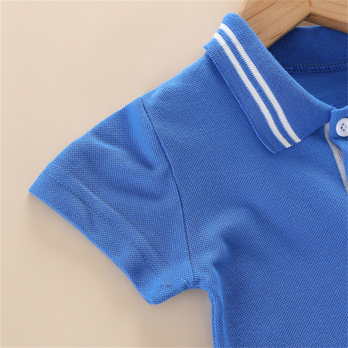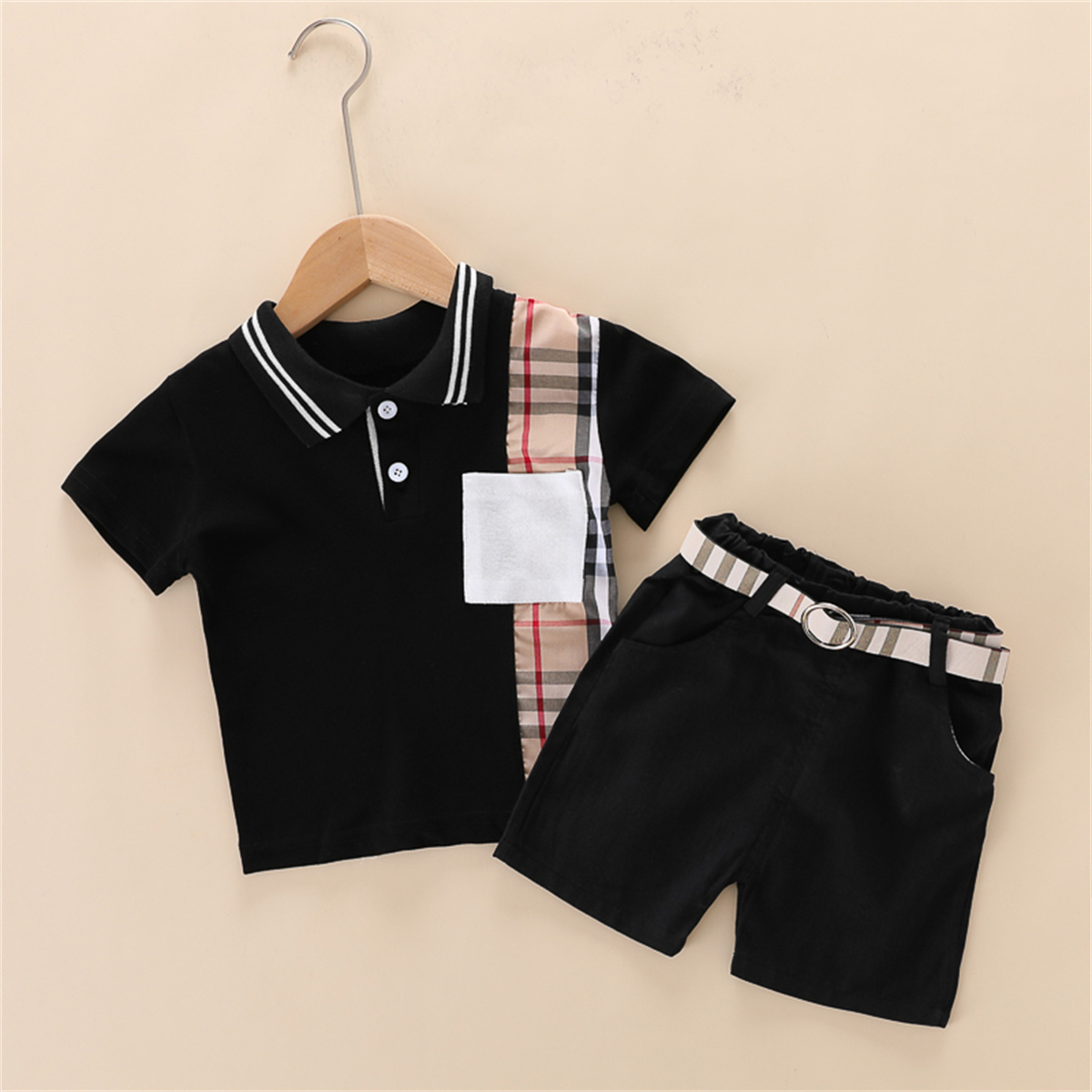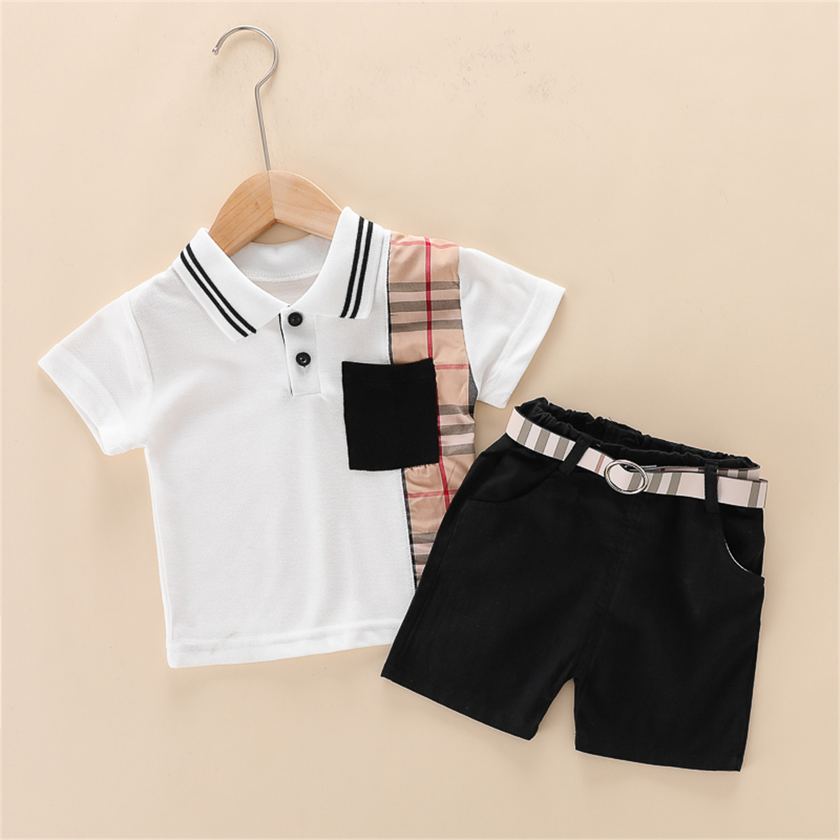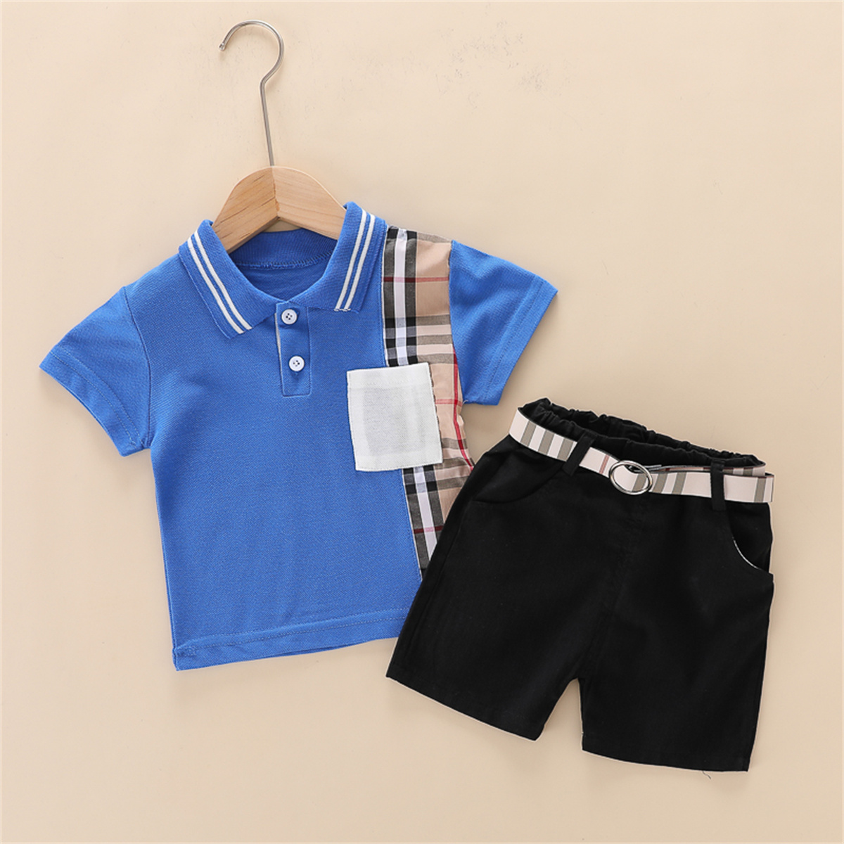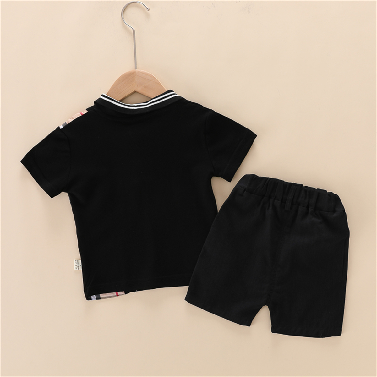 Toddler Boy Polo Collar Patchwork Color-block Plaid Top & Shorts Wholesale
