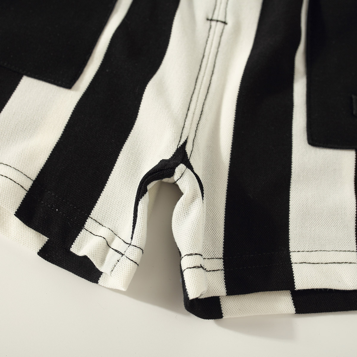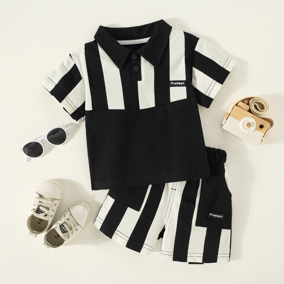 Toddler Boy Polo Collar Stripes Color-block Top & Shorts Wholesale