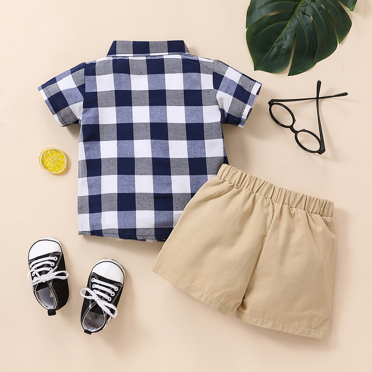 Toddler Boy Shirt Collar Plaid Color-block Top & Shorts Wholesale