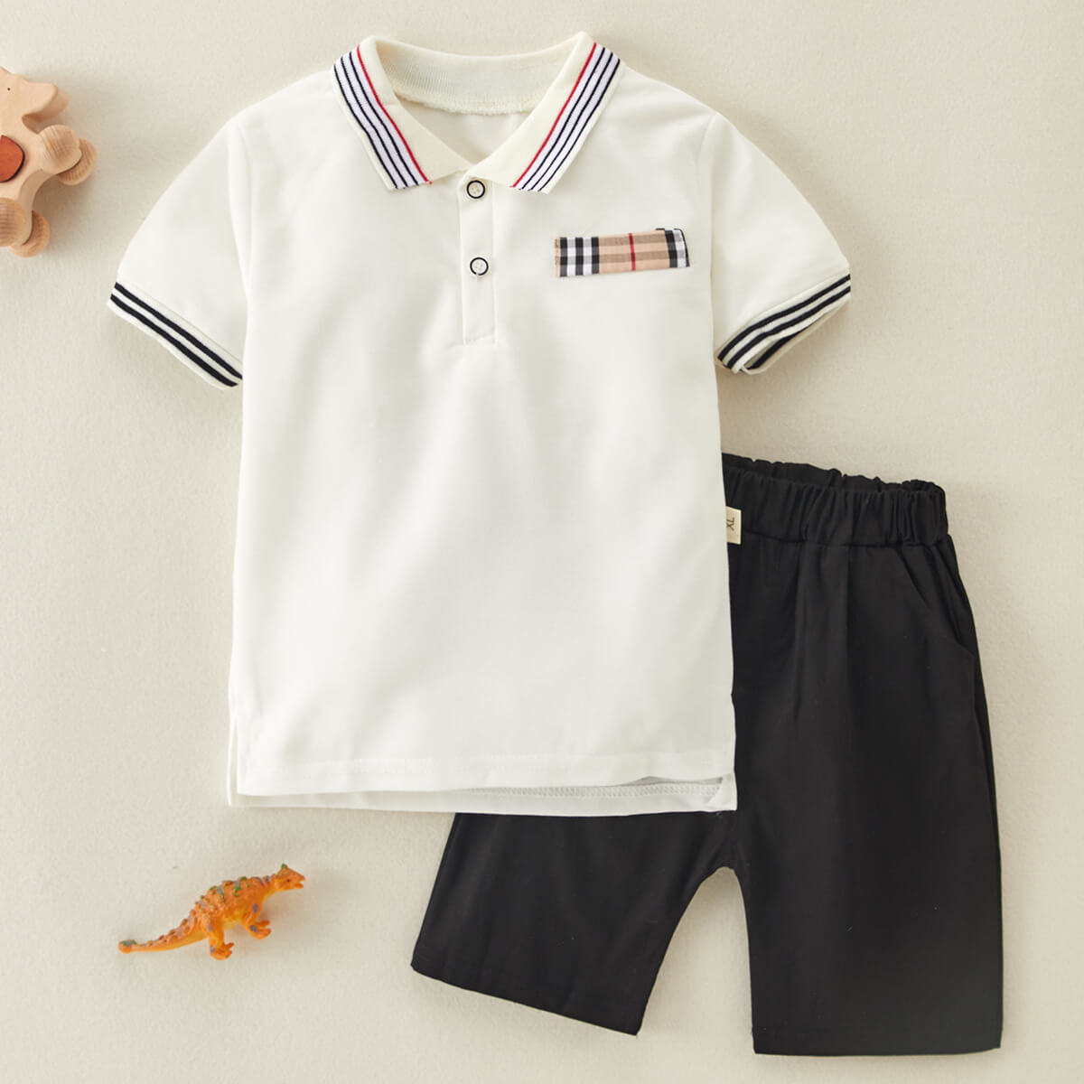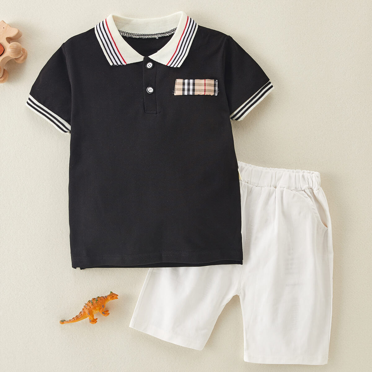 Toddler Boy Stripes Pattern Cotton Polo Shirt & Short Wholesale