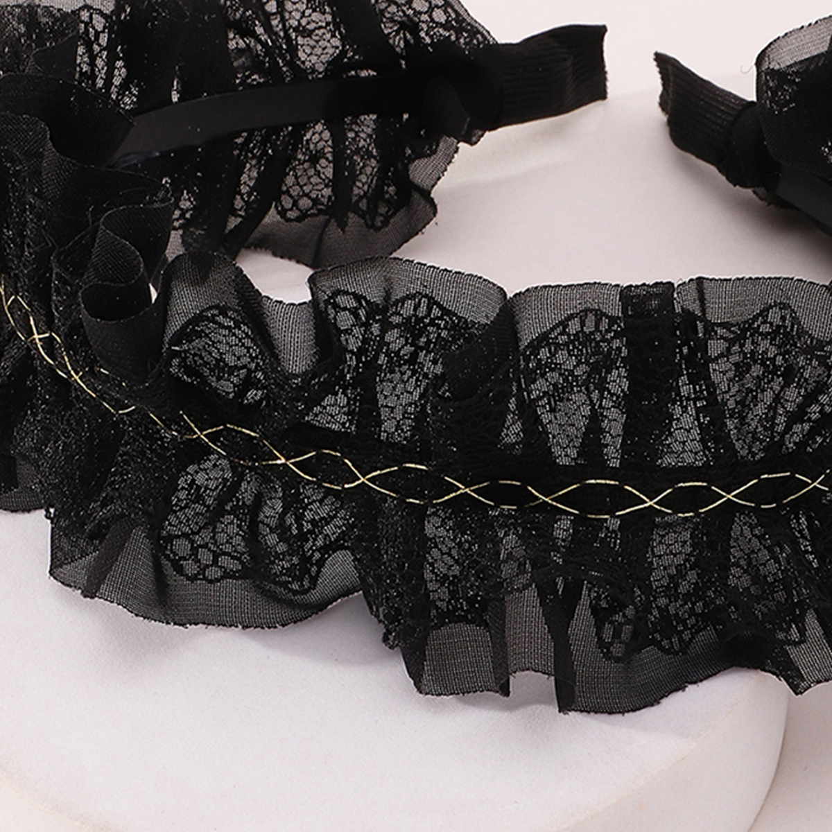 Toddler Girl Black Lace Trim Hair Rope Wholesale