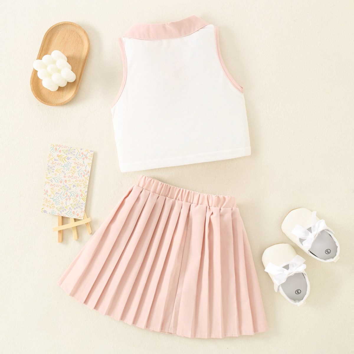 Toddler Girl Casual Cute Polo Shirt & Pleated Skirt Wholesale