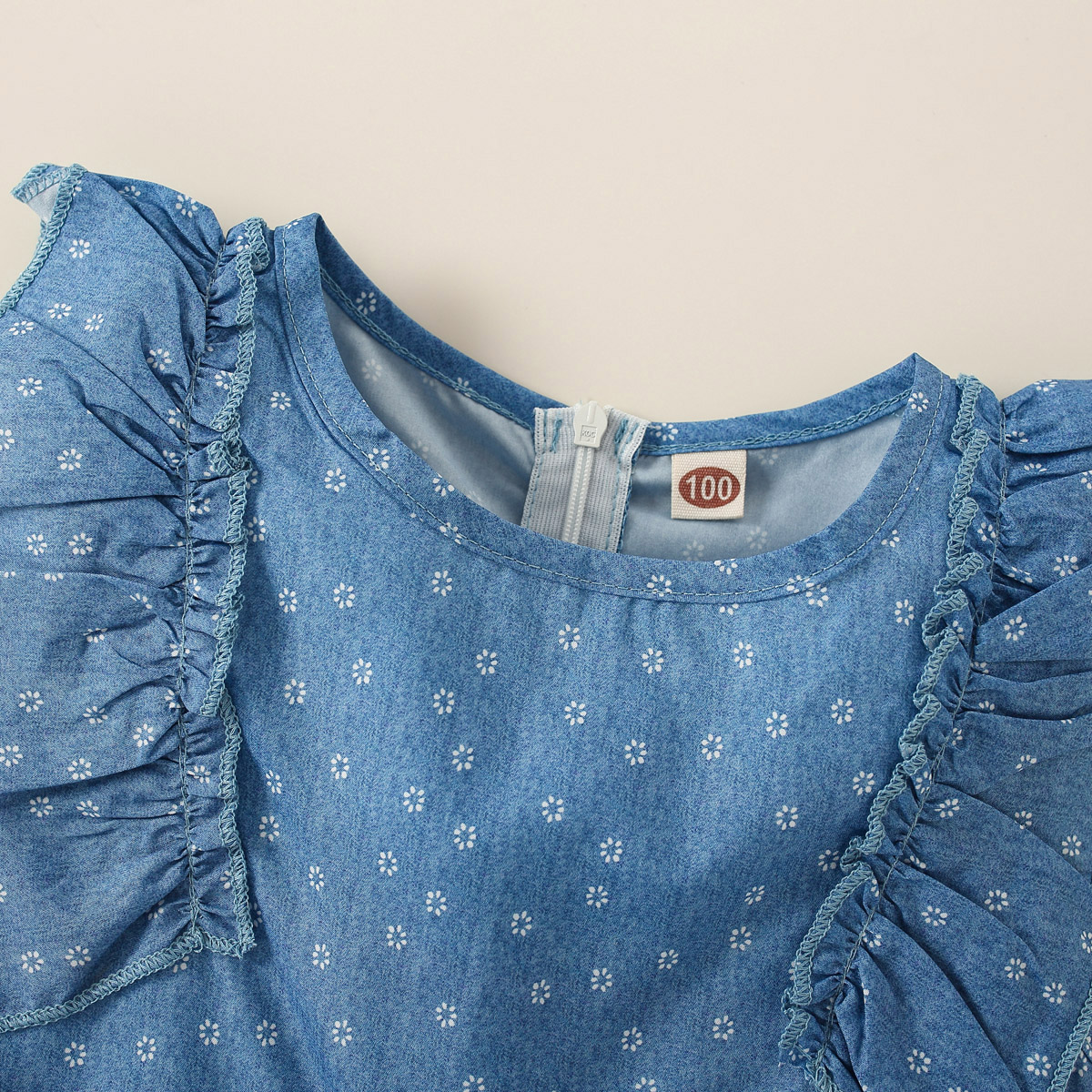 Toddler Girl Casual Ruffle Wave Point Romper & Belt Wholesale