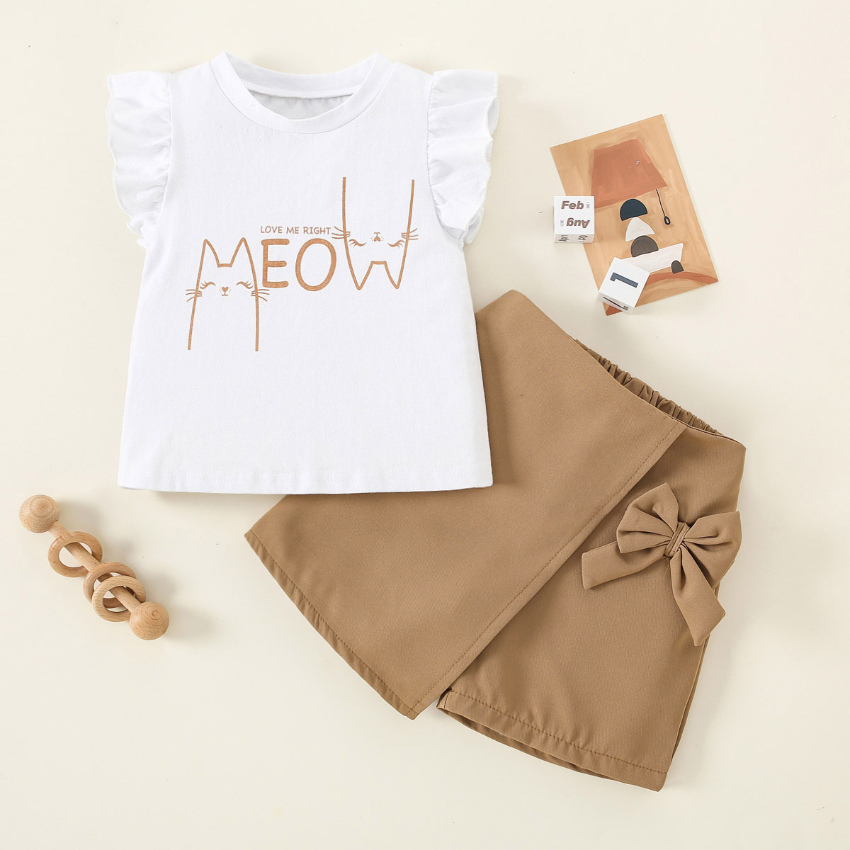 Toddler Girl Eleguard Cartoon Bow Knot Decor Tank Top & Shorts Wholesale