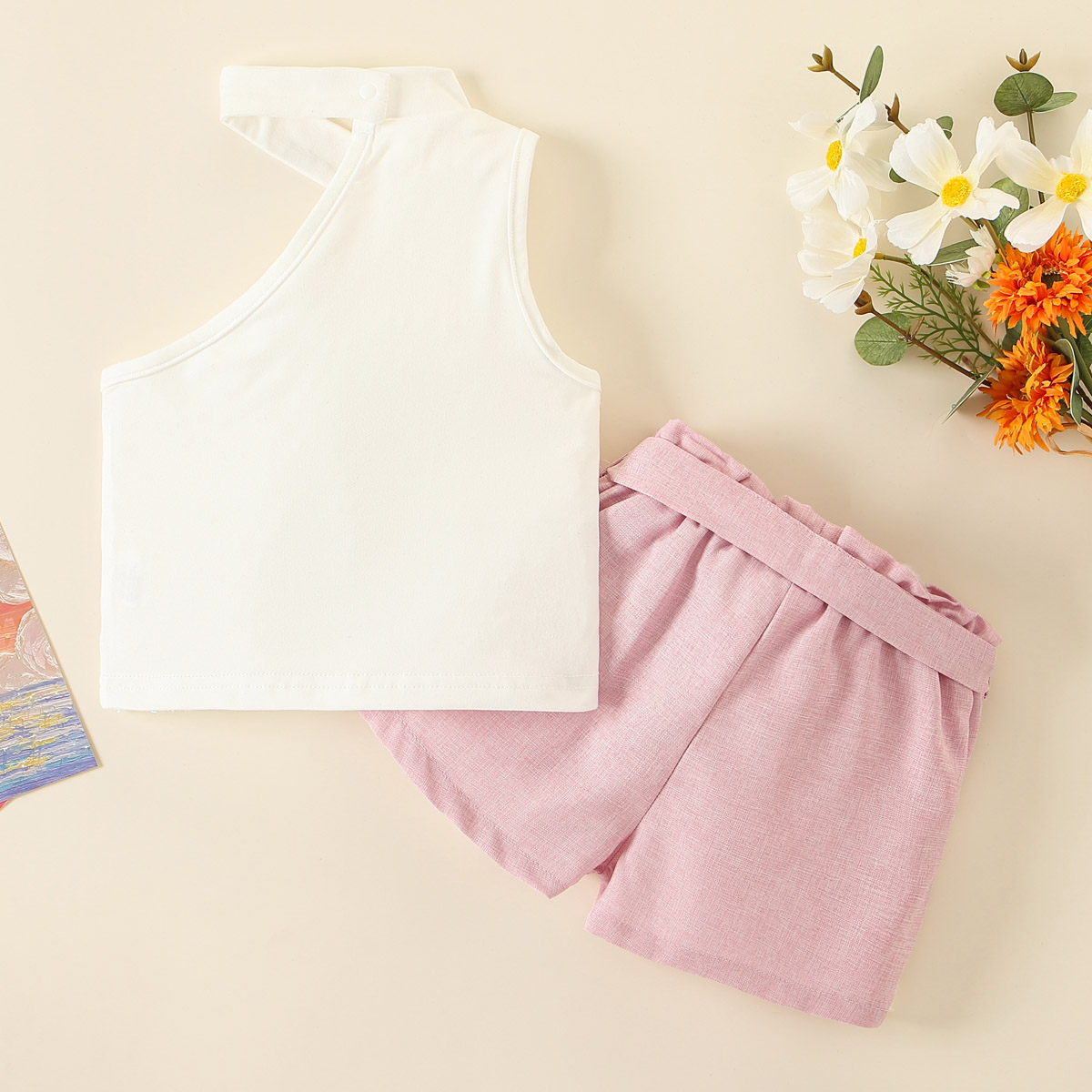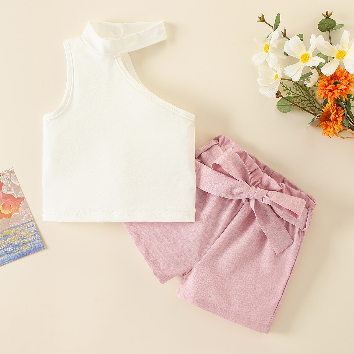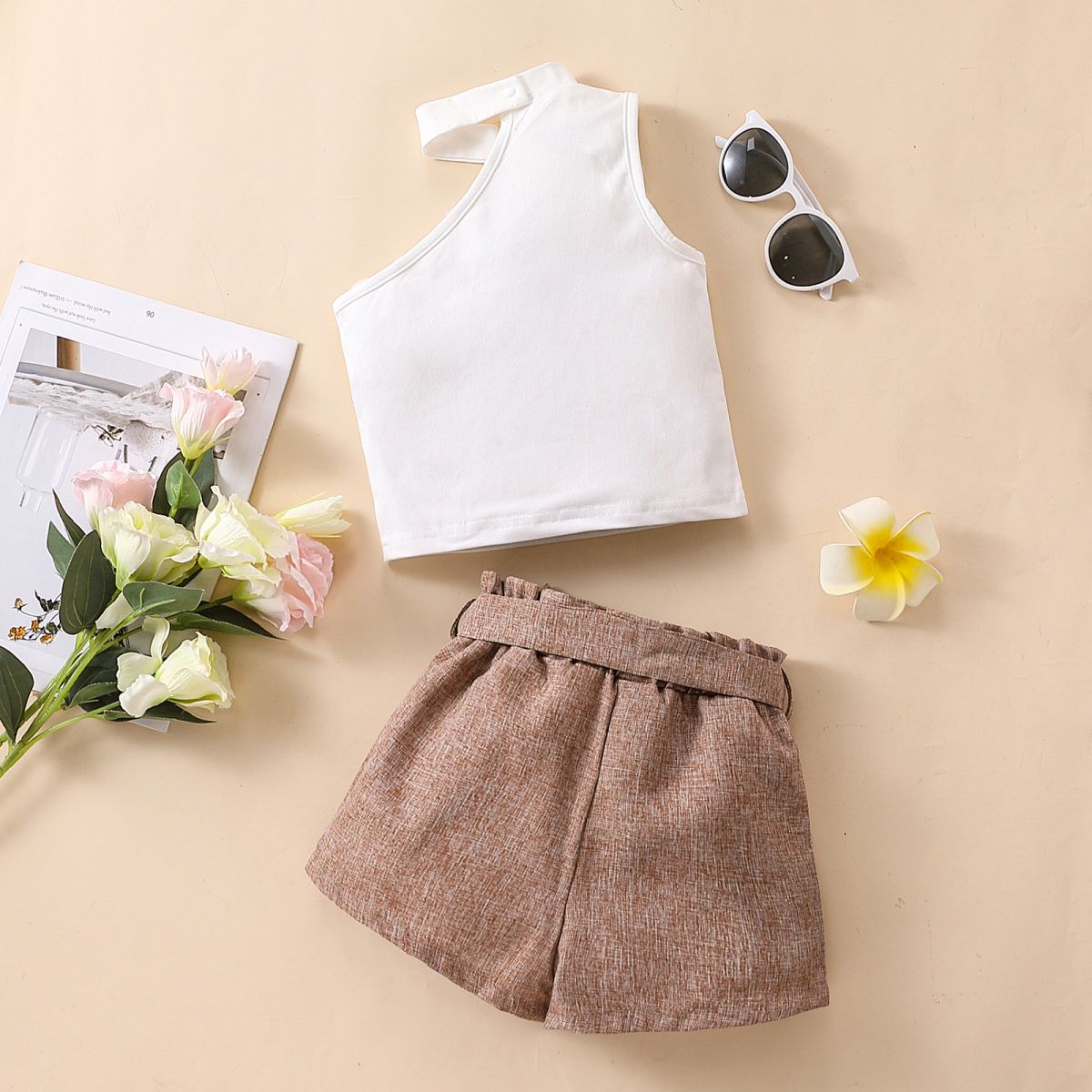 Toddler Girl Fashion Asymmetric Tank Top & Shorts & Belt Wholesale