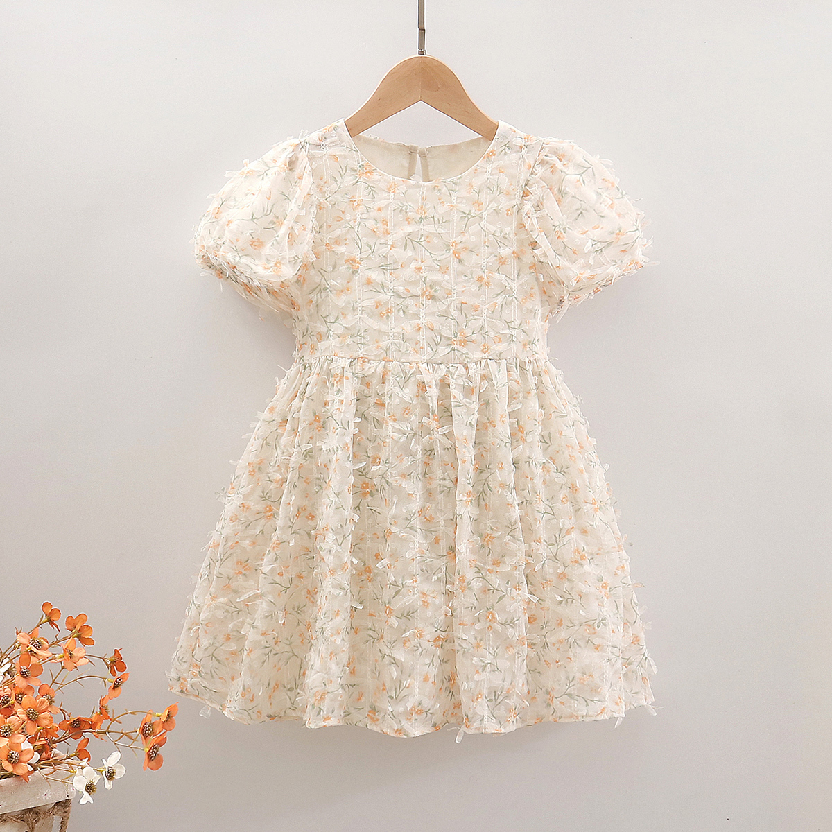 Toddler girl Floral Mesh Bow Tie Dress Wholesale