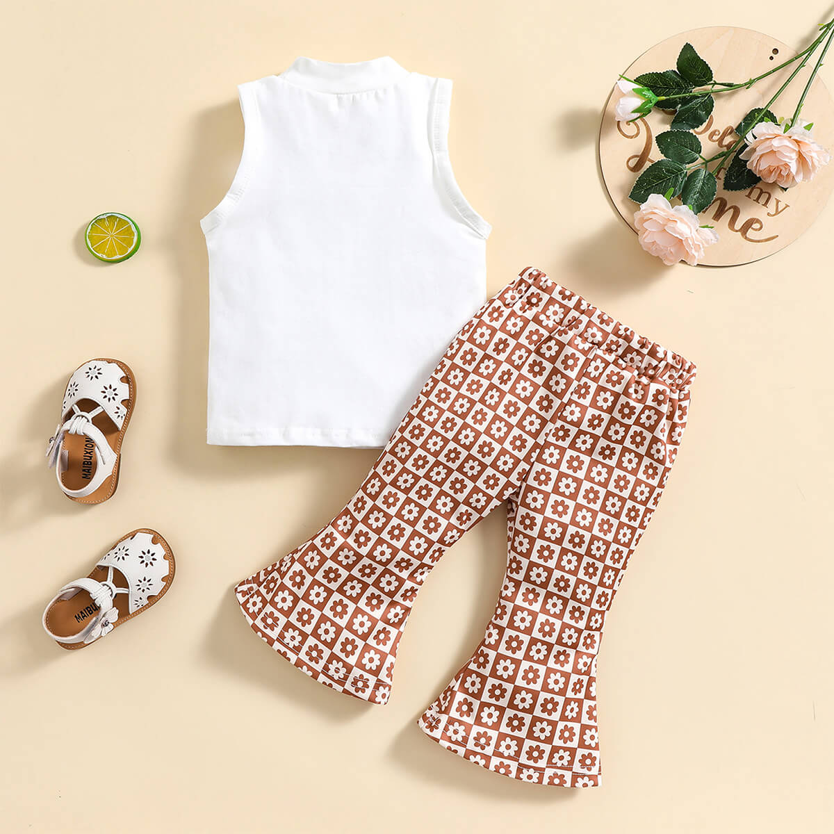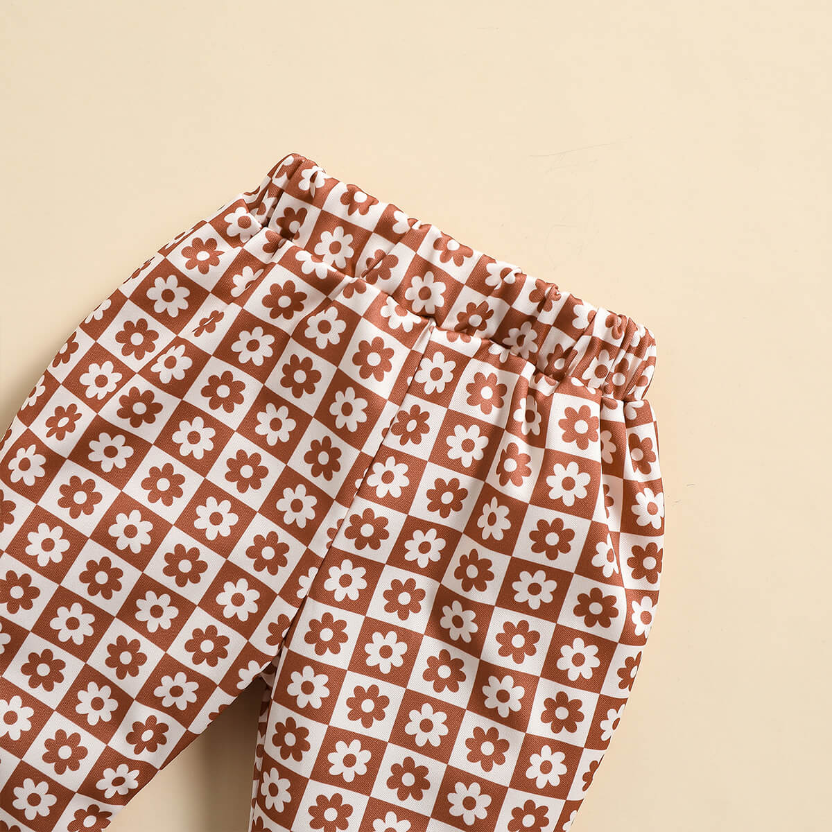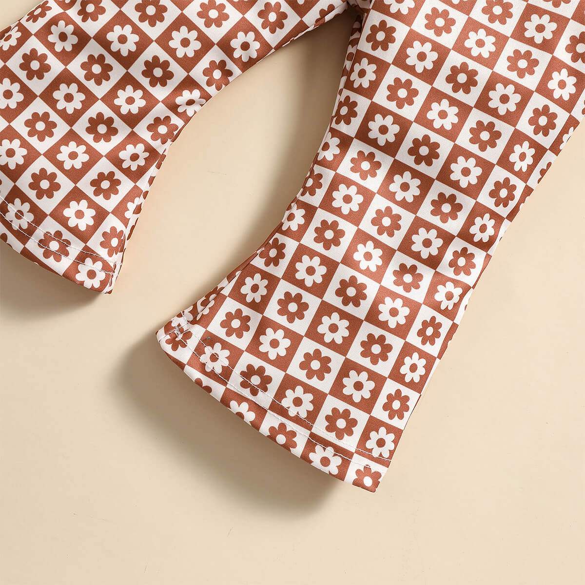 Toddler Girls Cotton Floral Plaid Solid Top & Flared Pants Wholesale