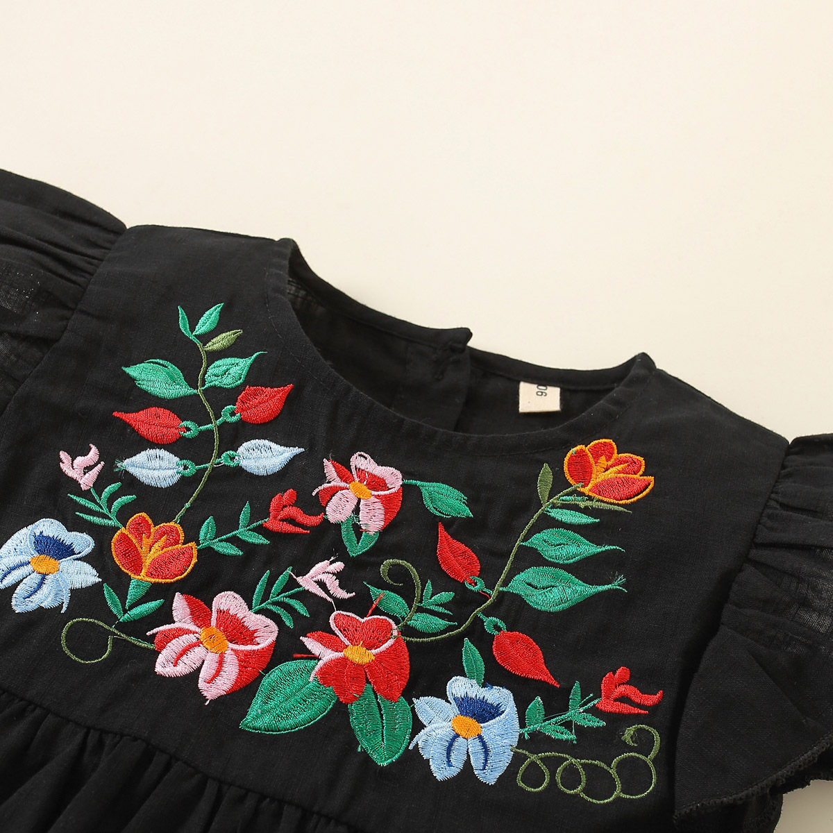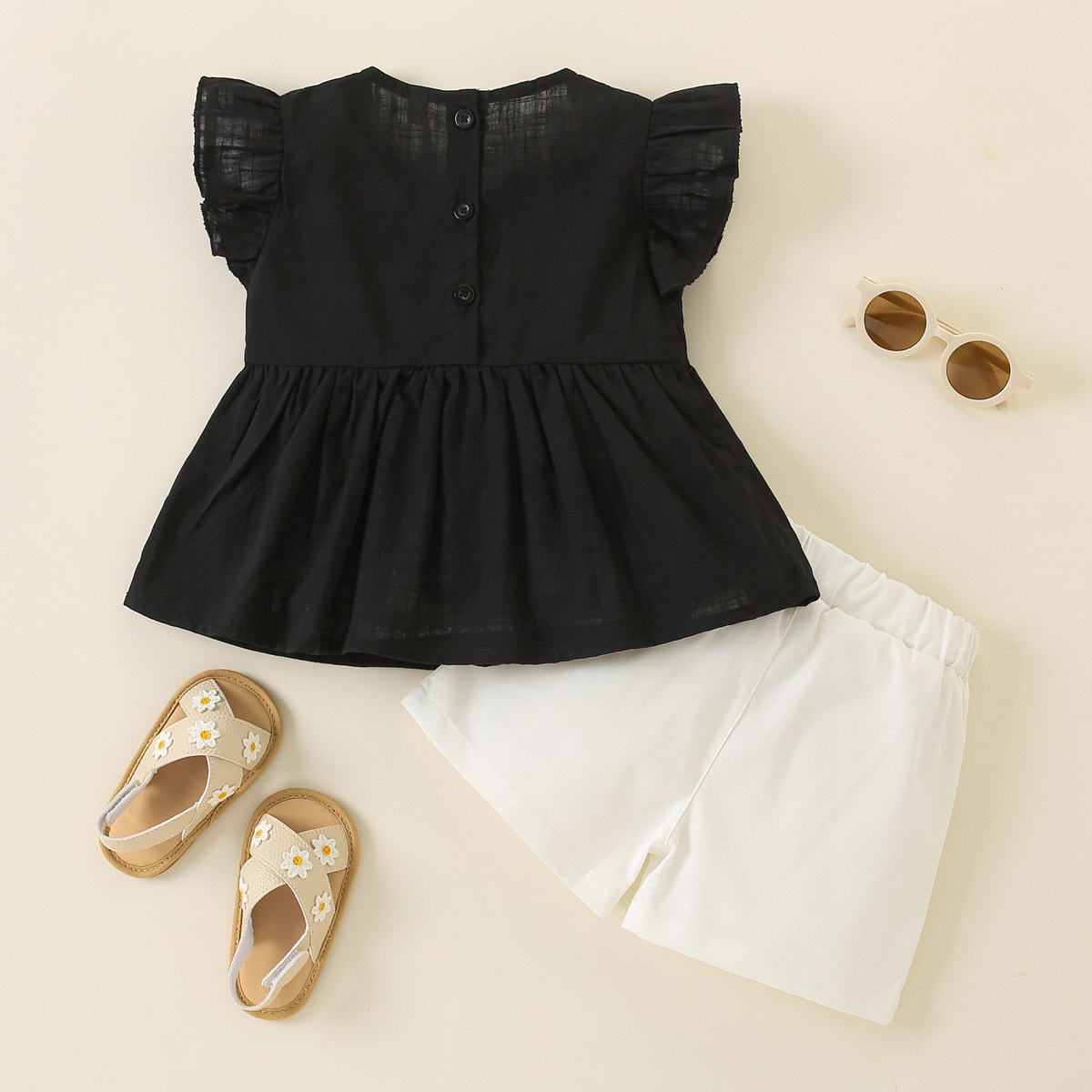 Toddler Girls Folk Sweet Embroidered Button Color-block Top & Shorts Wholesale
