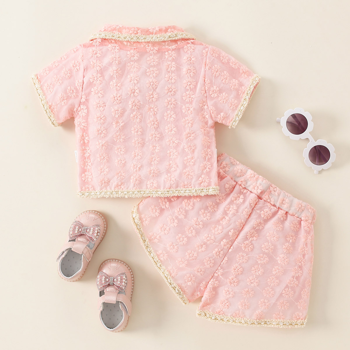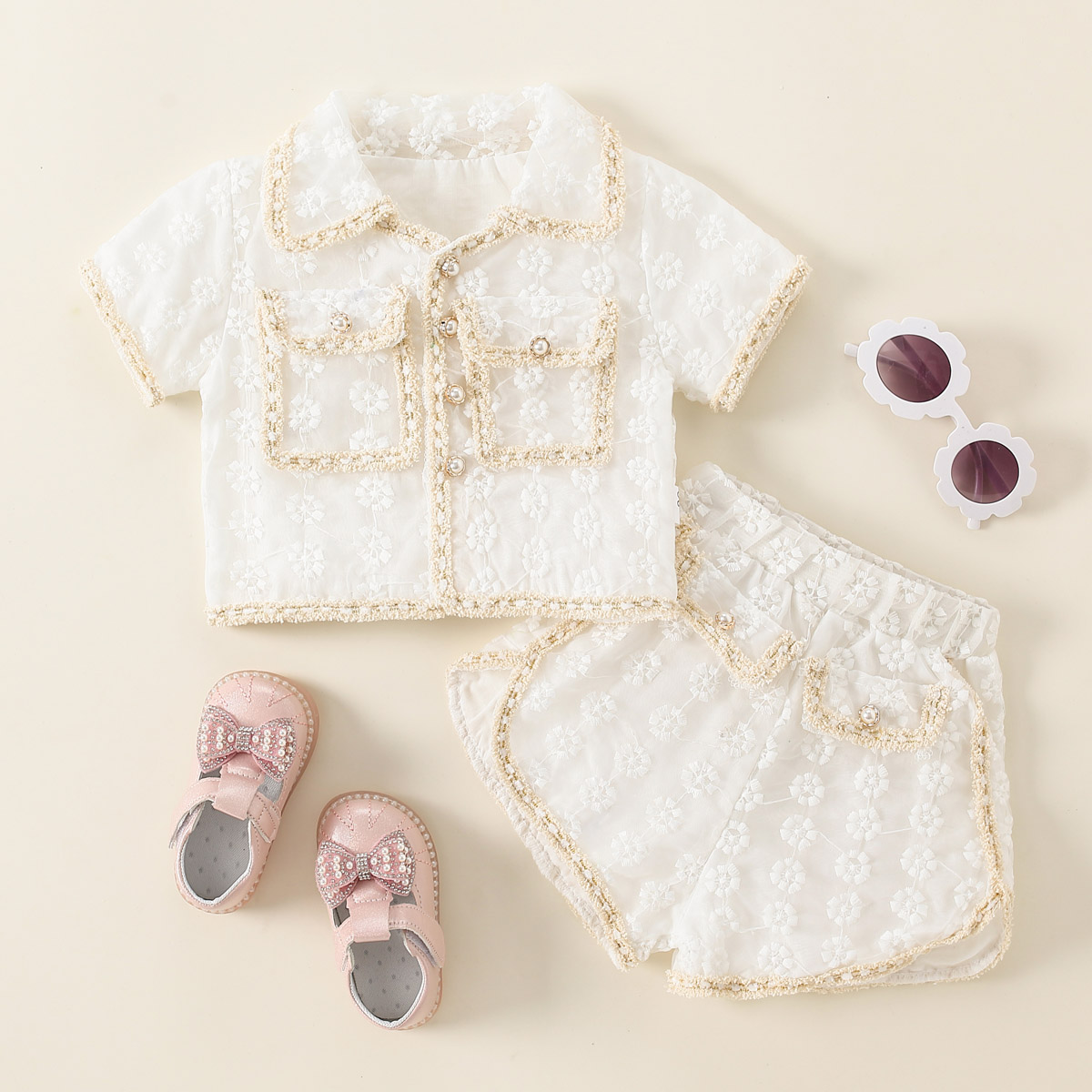 Toddler Girls Lapel Sweet Solid Top & Shorts Wholesale