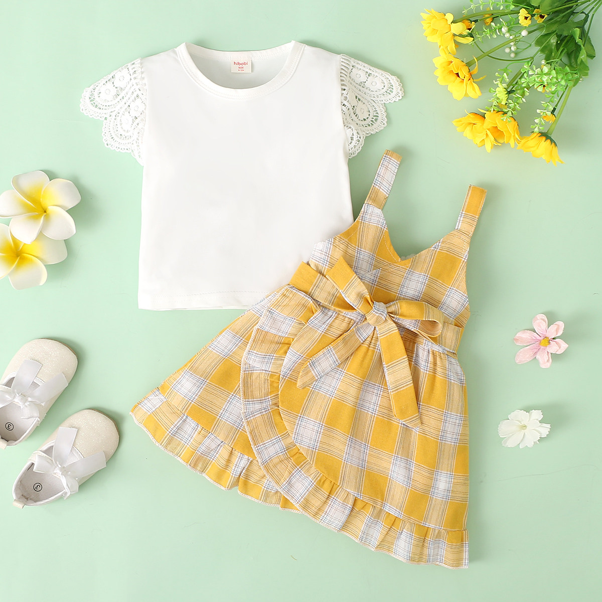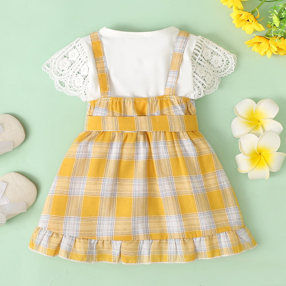 Toddler Girls Petal Sleeve Plaid Hollow Out Plaid Top & Skirt Wholesale