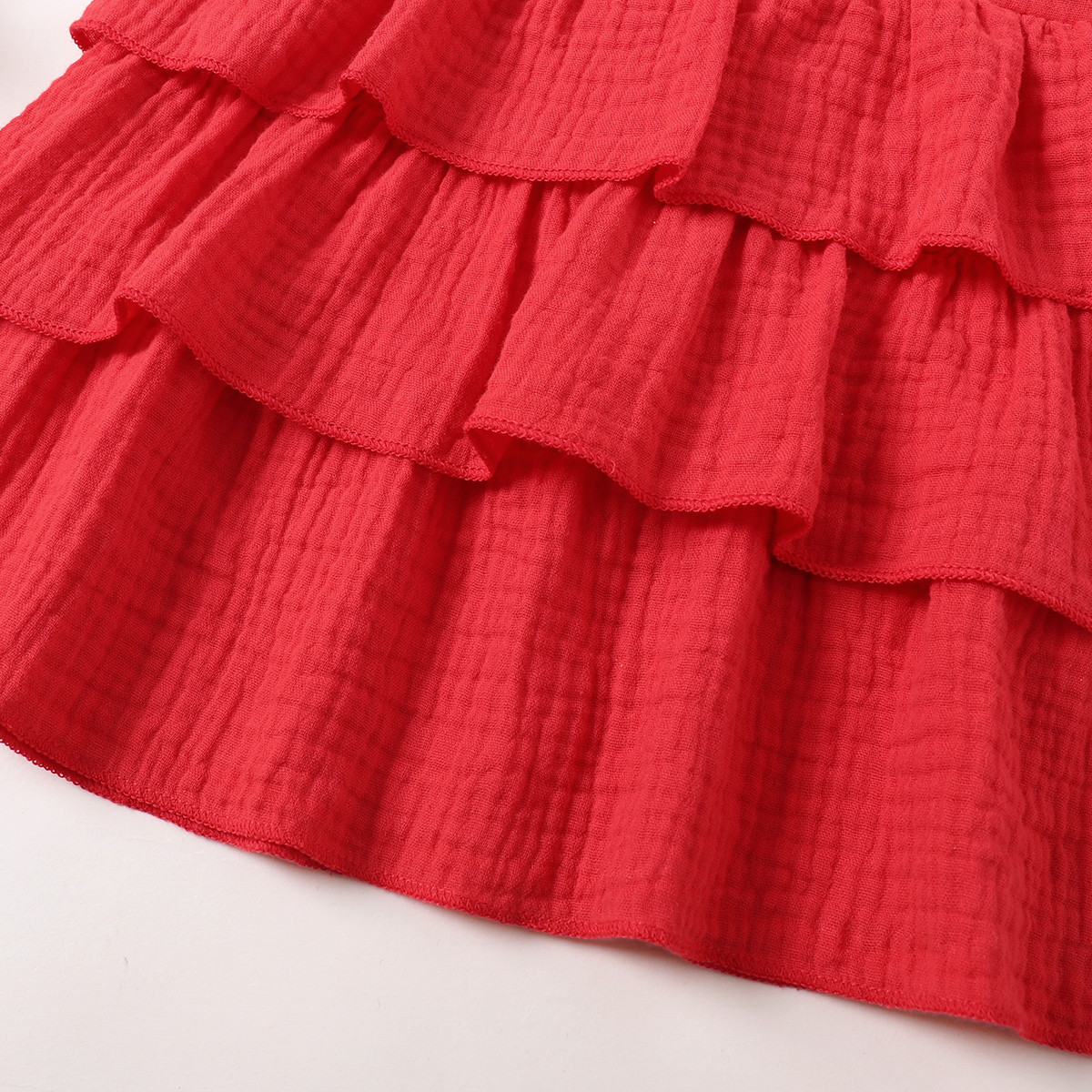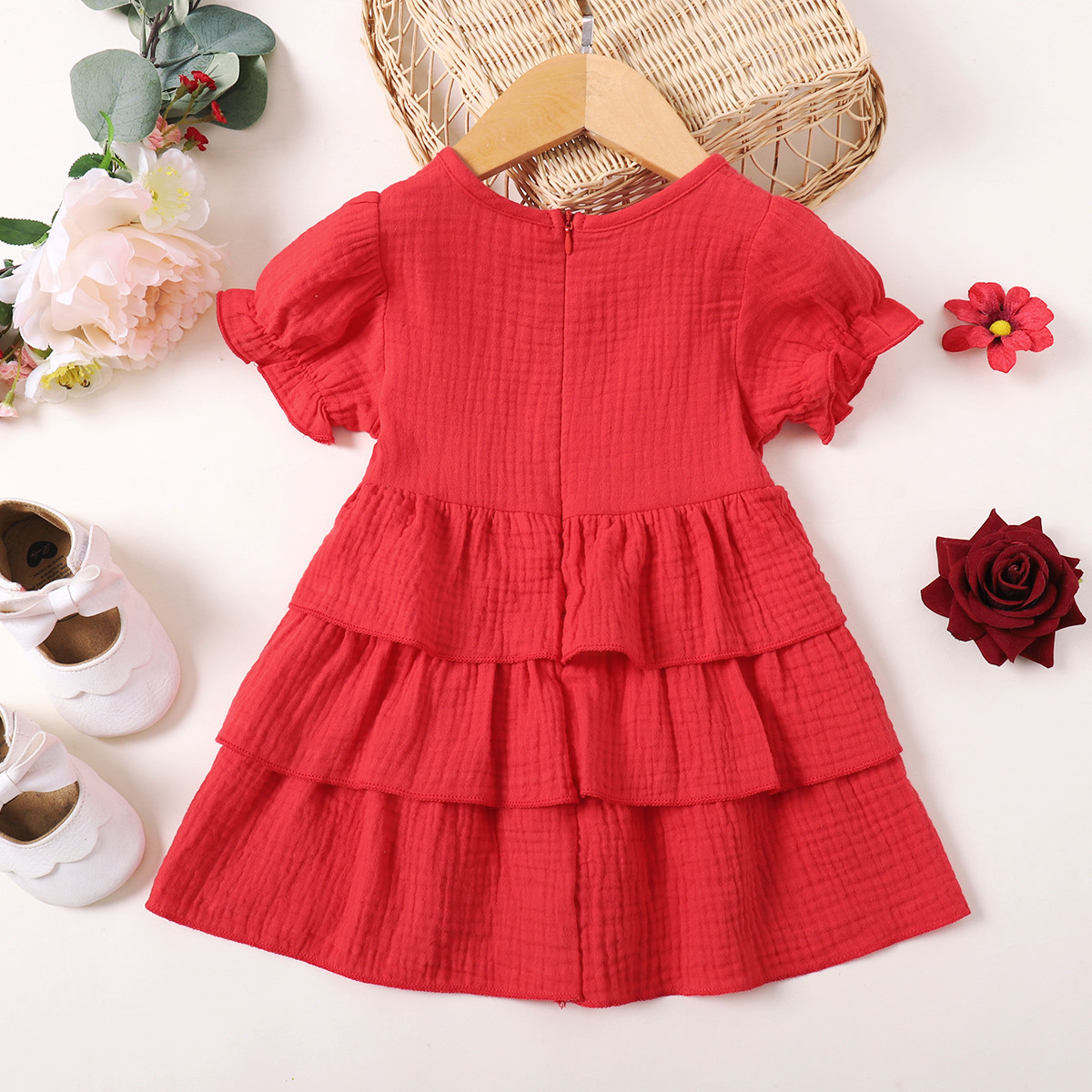 Toddler Girls Solid Puff Sleeve Layered Skirt Dress Wholesale