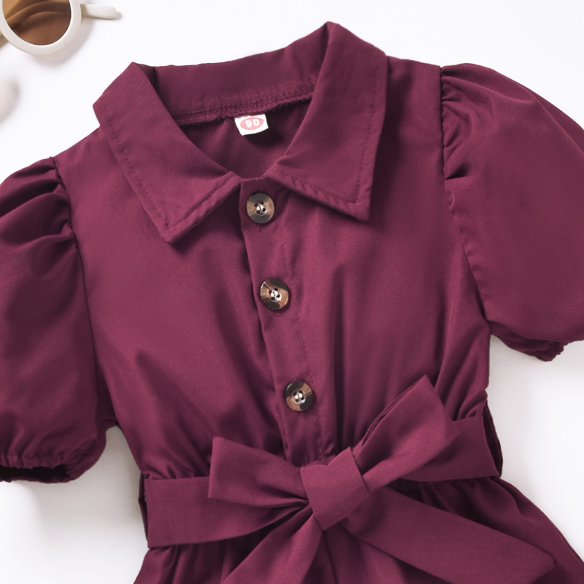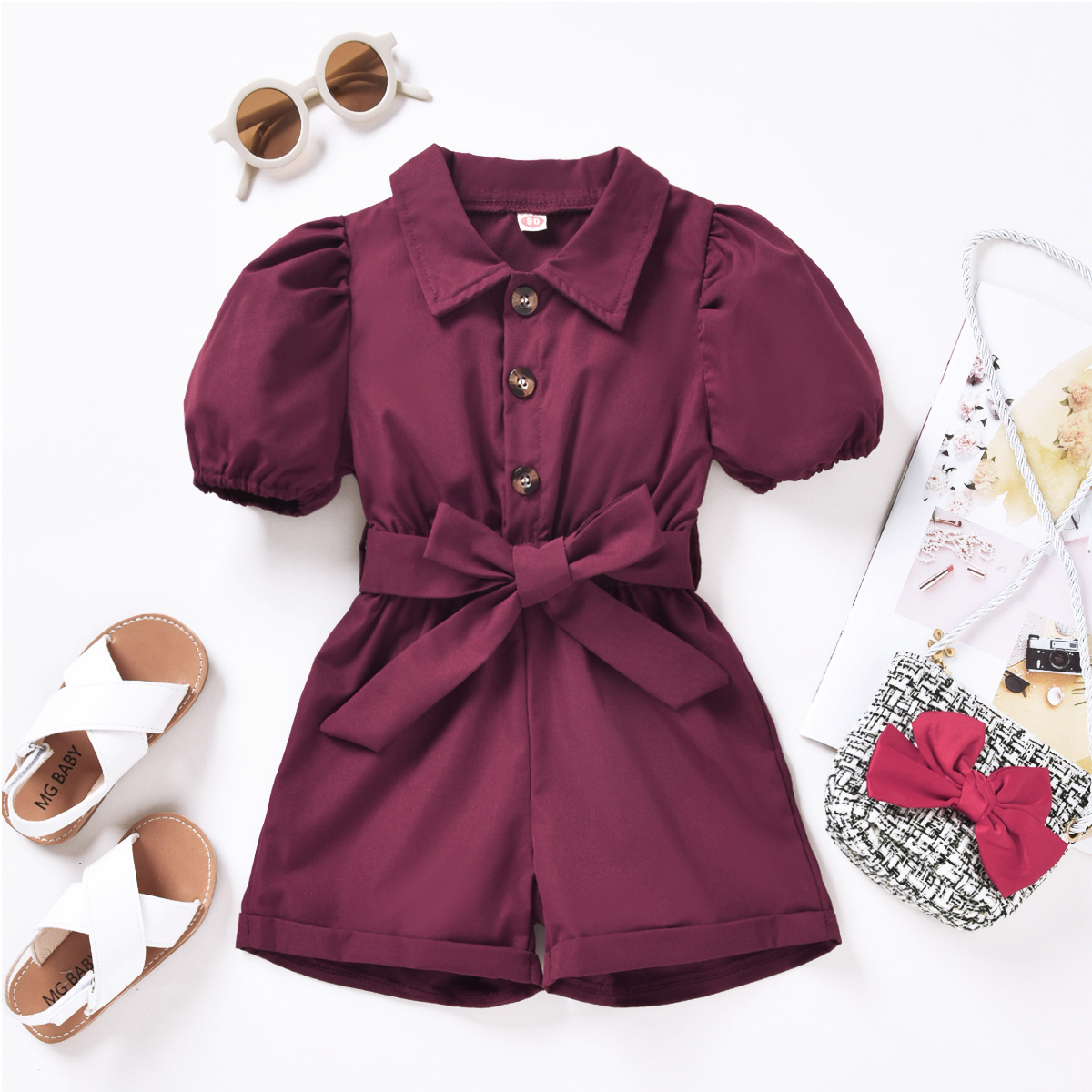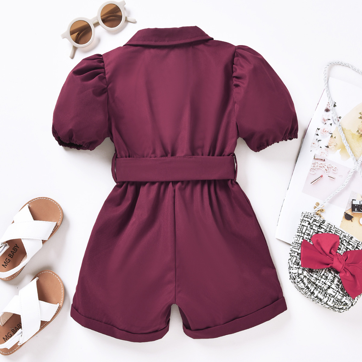 Toddler Girls Solid Puff Sleeve Top Overalls Wholesale