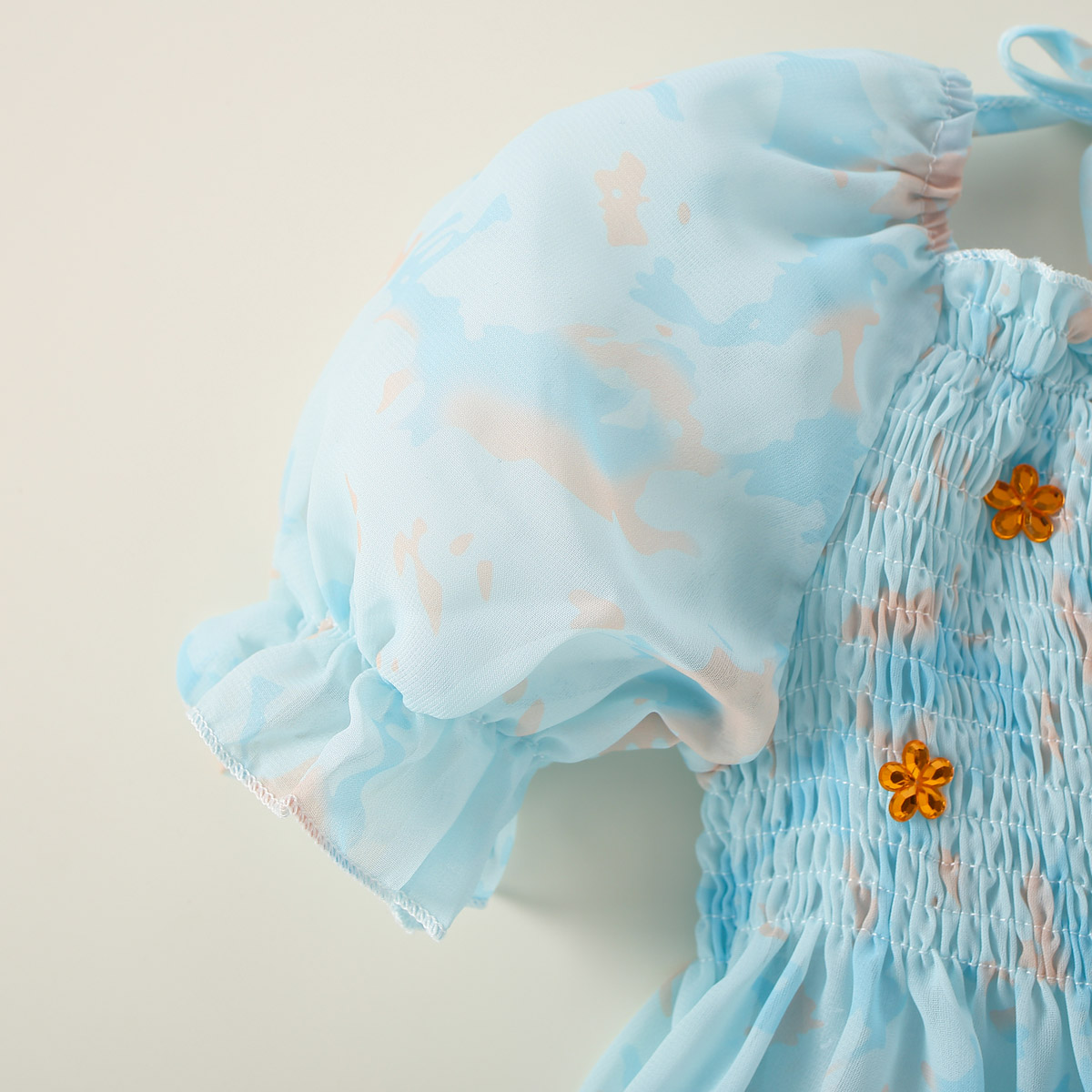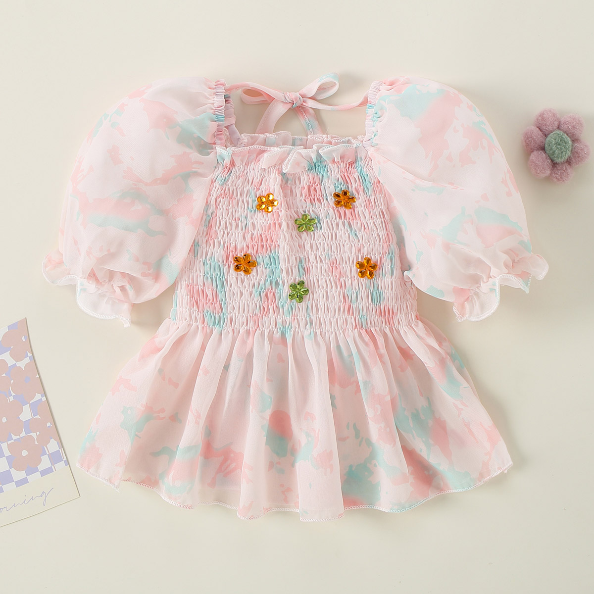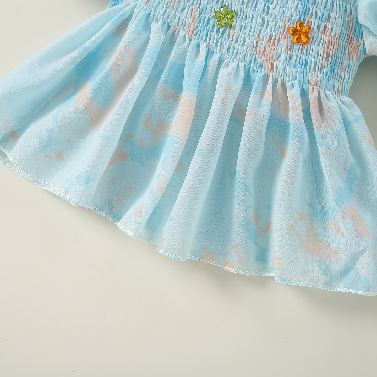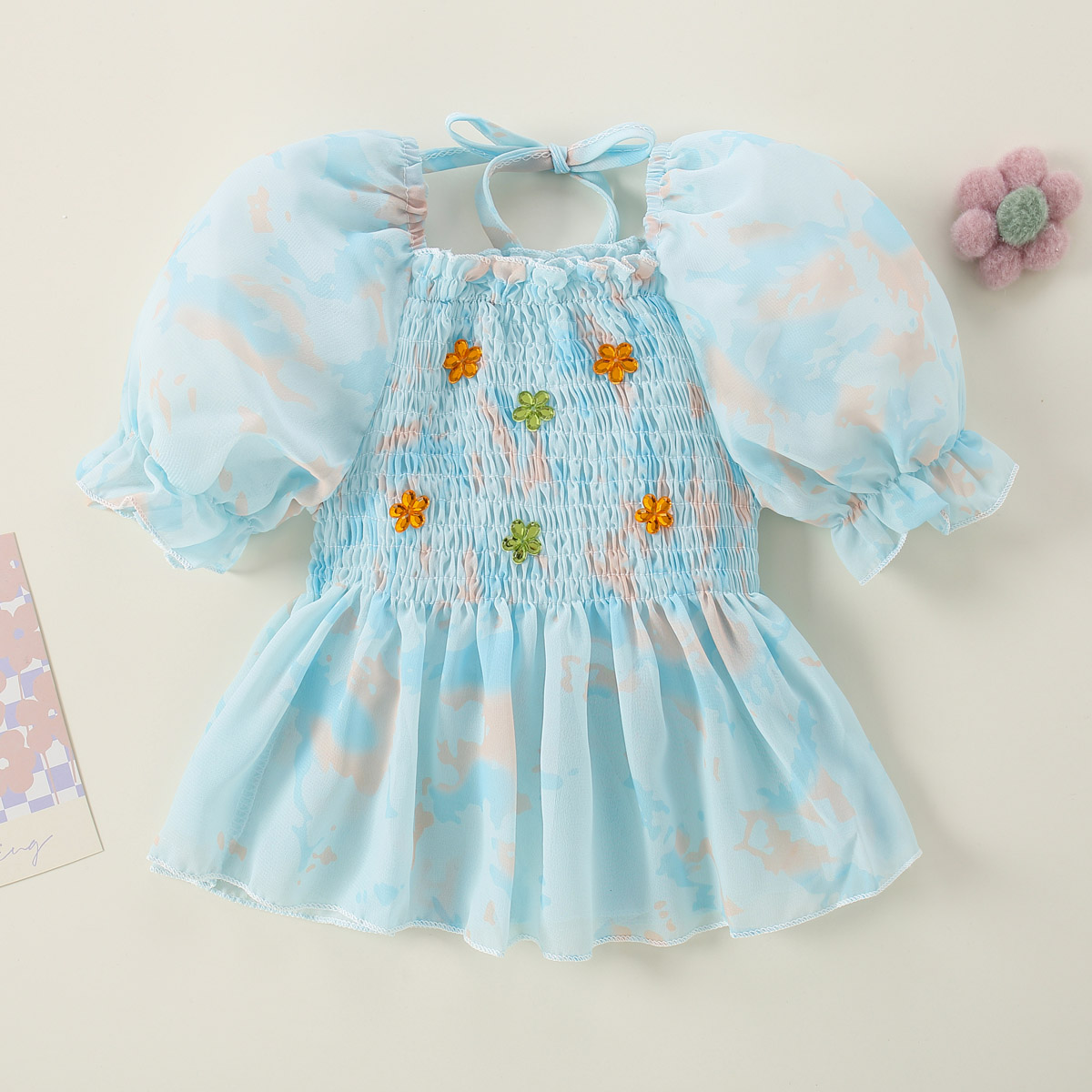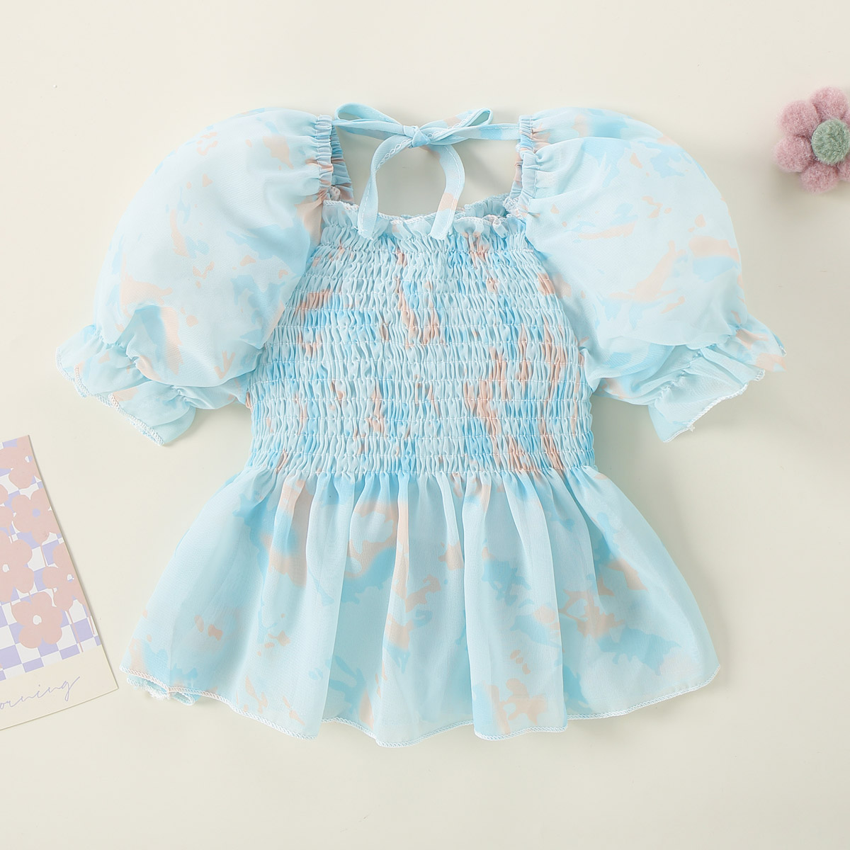 Toddler Girls Sweet Daily Floral Color-block Puff Sleeve Top T-shirt Wholesale