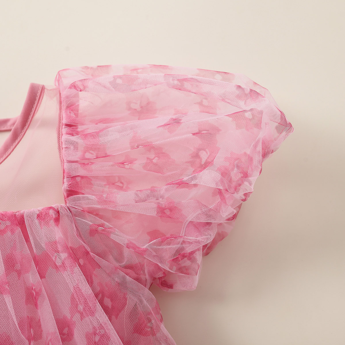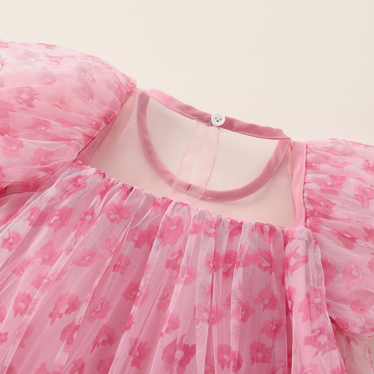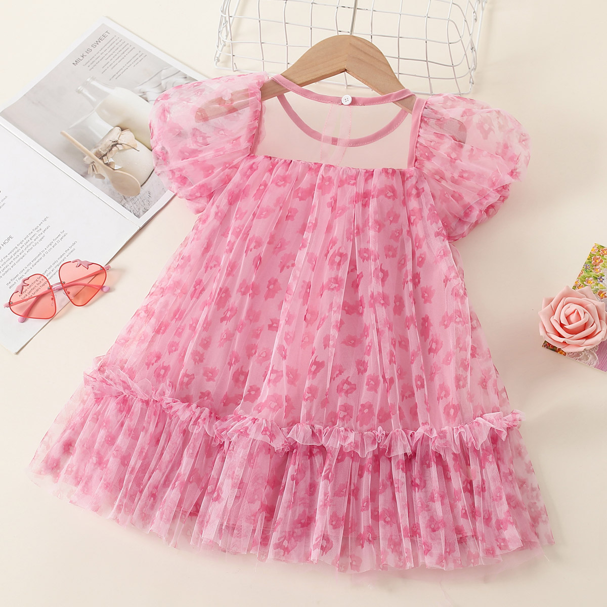 Toddler Girls Sweet Floral Layered Skirt Mesh Dress Wholesale