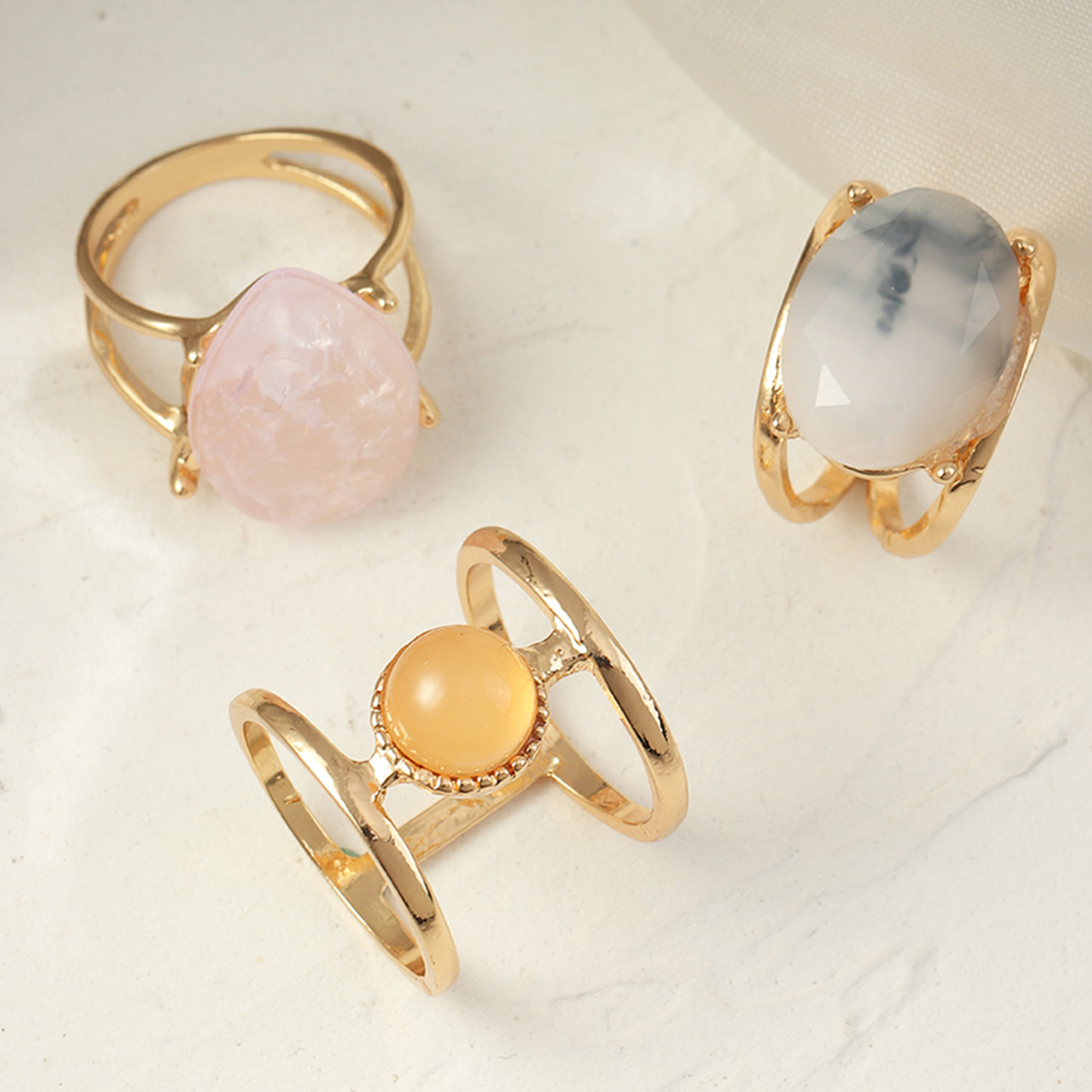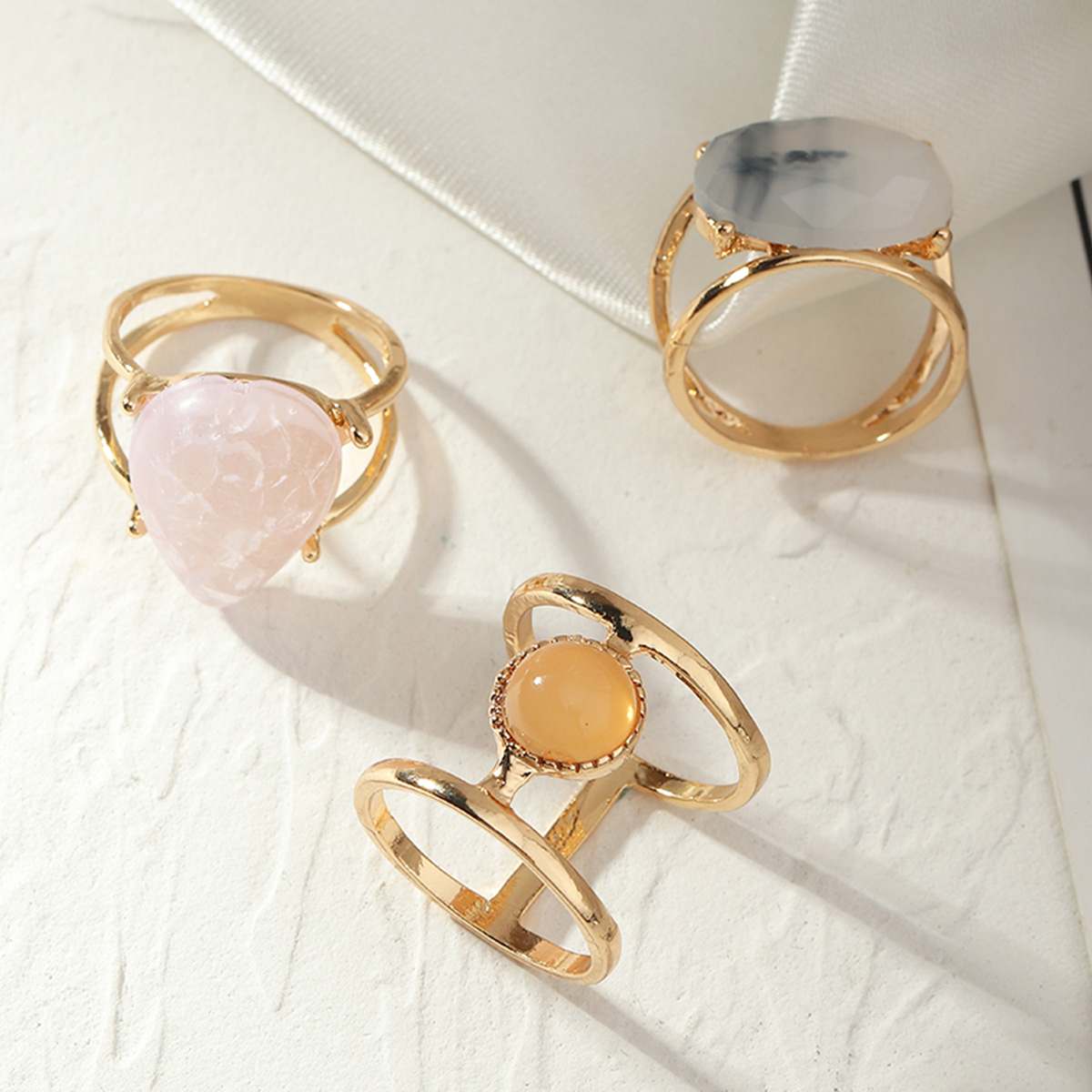 Women 3-Piece Metal Gemstone Decoration Ring Wholesale